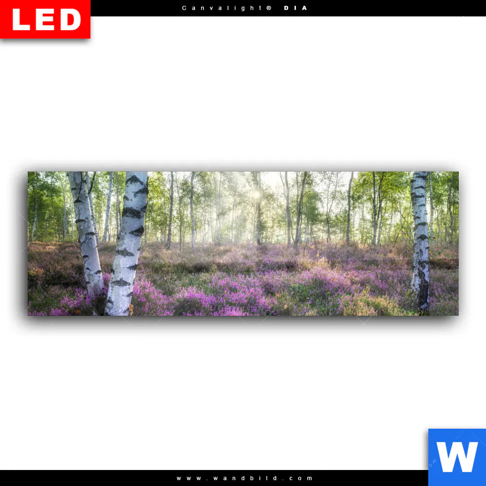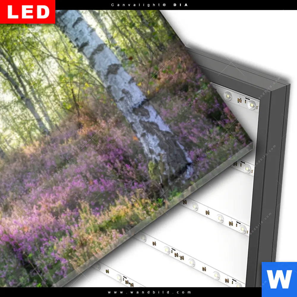 Wechselmotiv Acrylglas Canvalight® DIA | Wald mit Heideblumen | Panorama