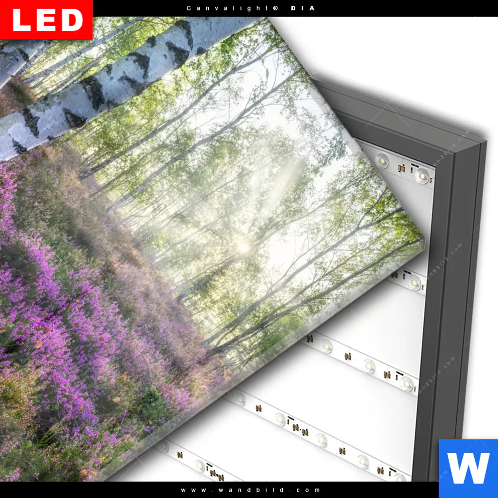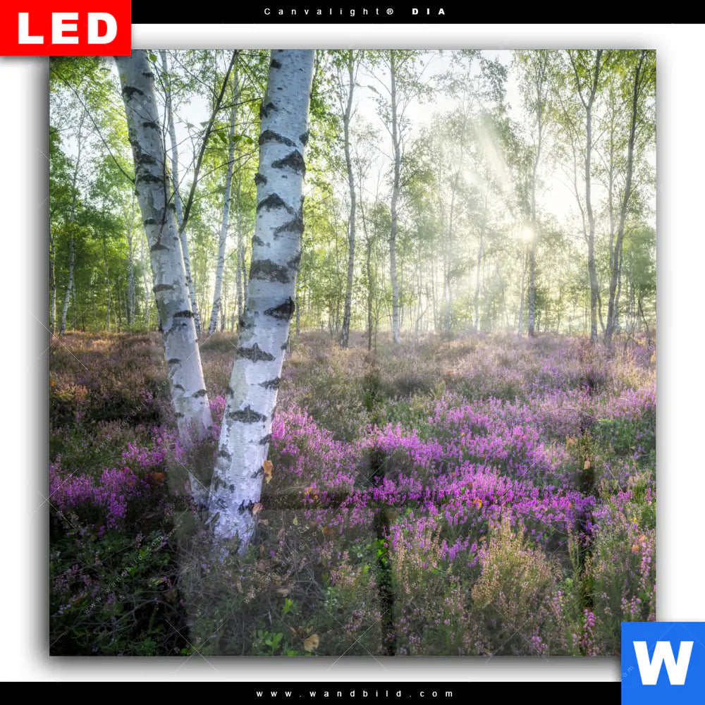 Wechselmotiv Acrylglas Canvalight® DIA | Wald mit Heideblumen | Quadrat