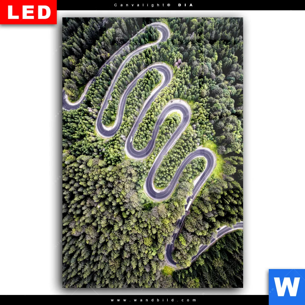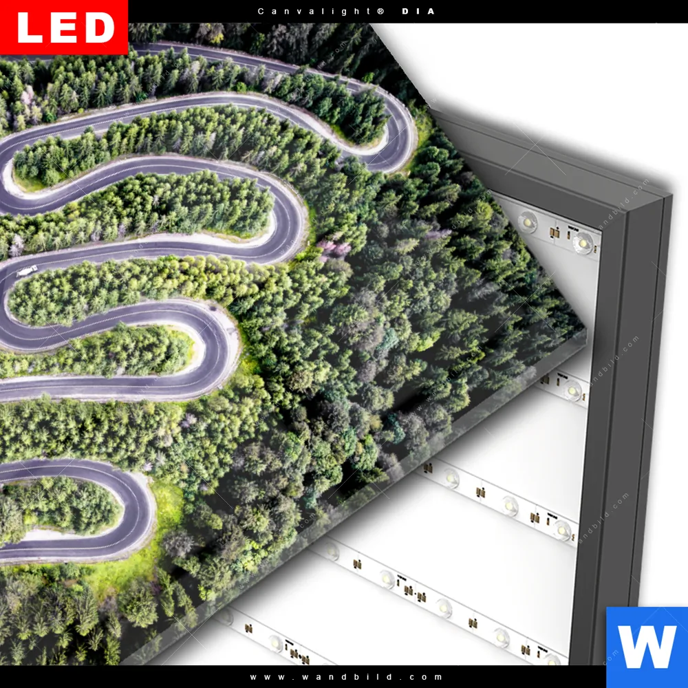 Wechselmotiv Acrylglas Canvalight® DIA | Wald & Straße Luftaufnahme | Hochformat