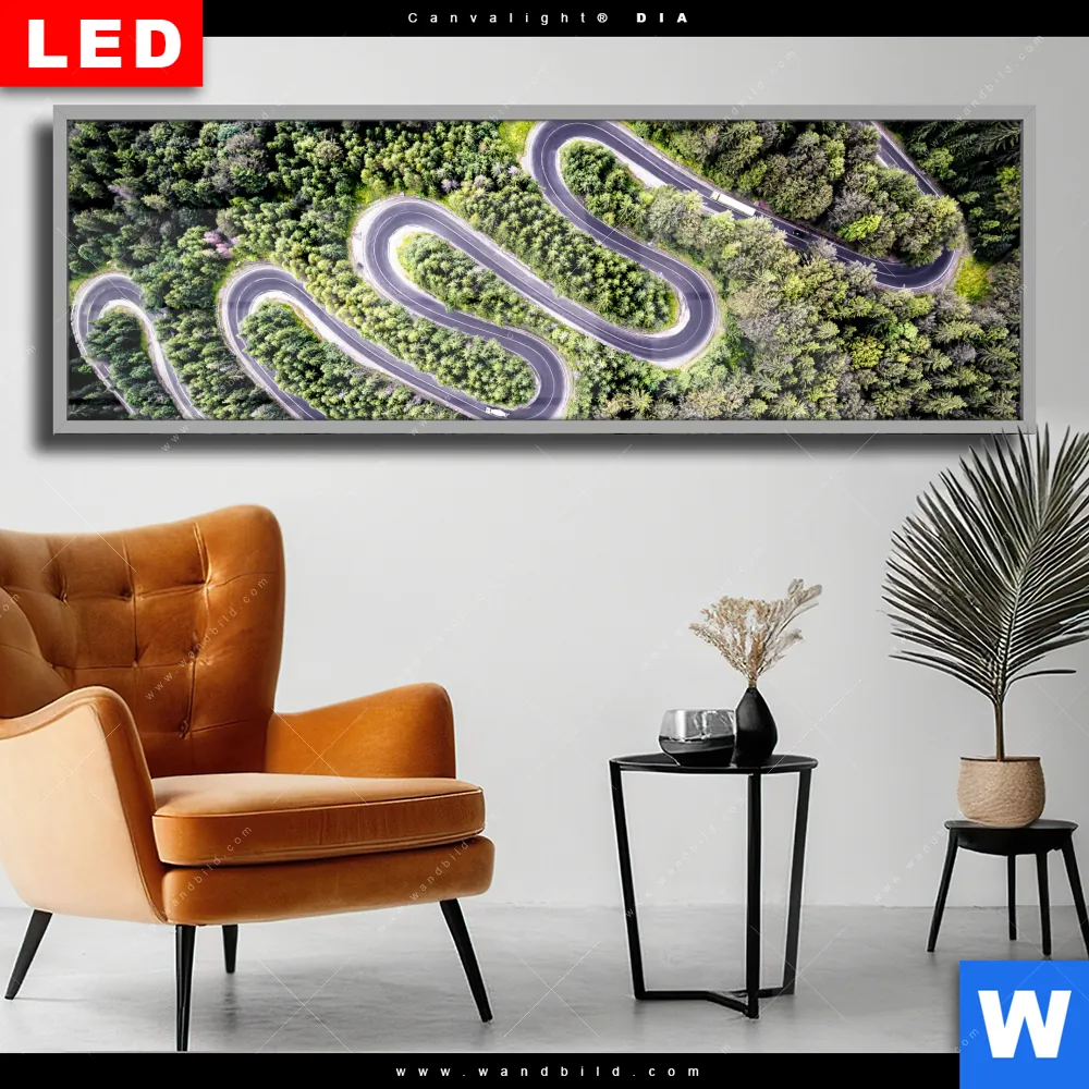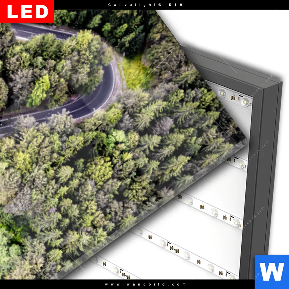 Wechselmotiv Acrylglas Canvalight® DIA | Wald & Straße Luftaufnahme | Panorama
