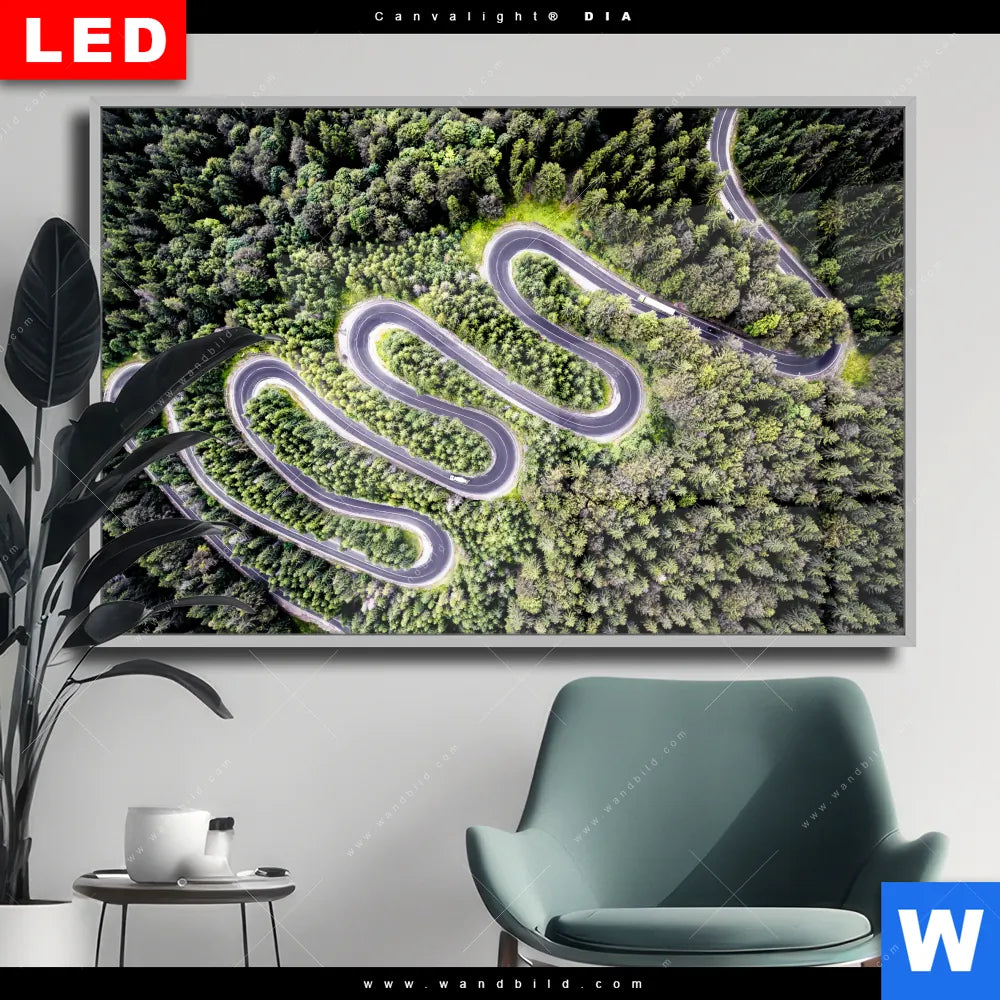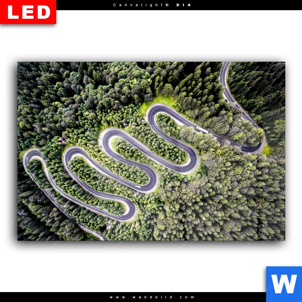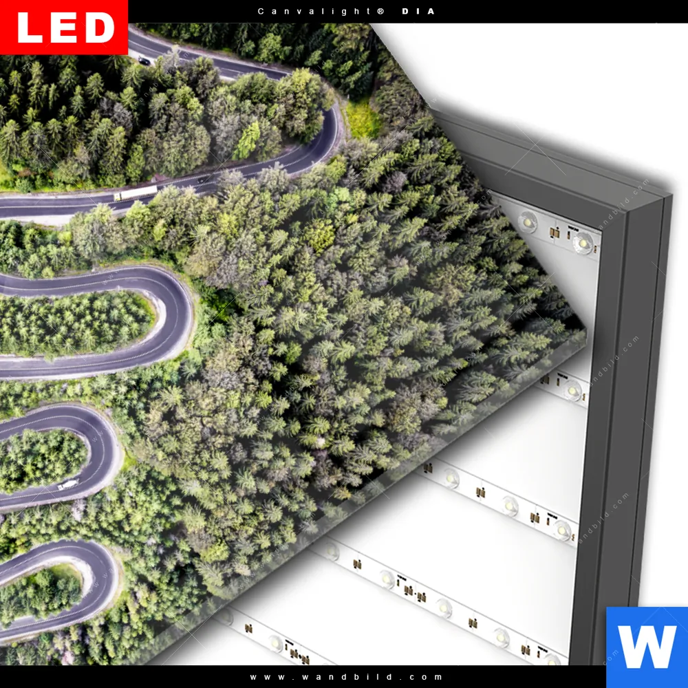 Wechselmotiv Acrylglas Canvalight® DIA | Wald & Straße Luftaufnahme | Querformat