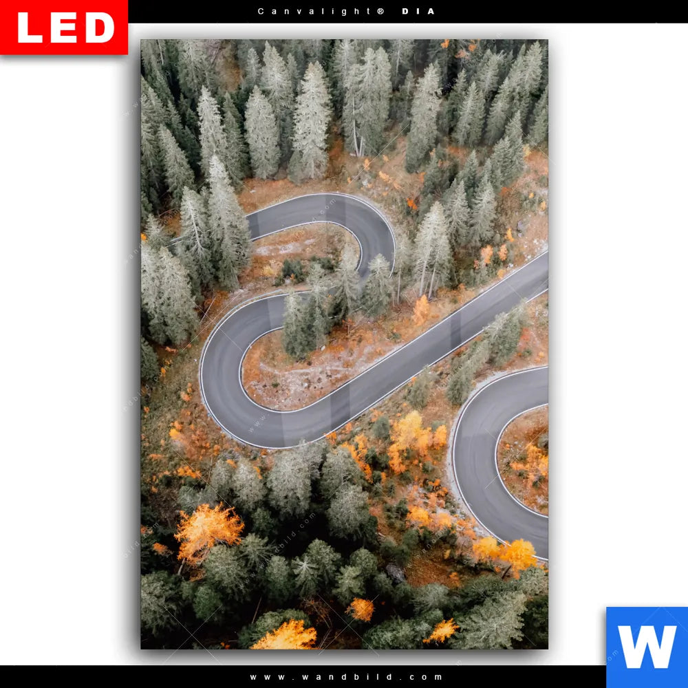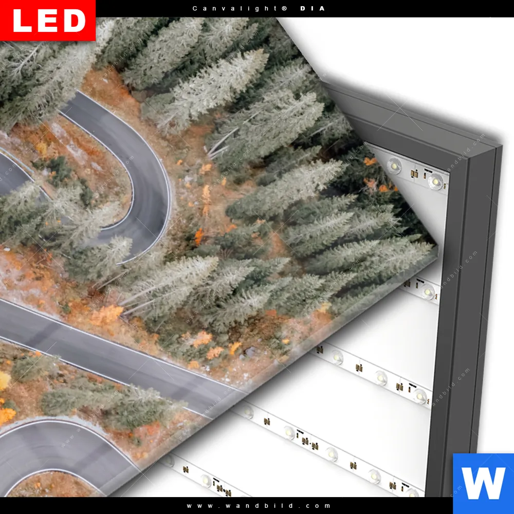 Wechselmotiv Acrylglas Canvalight® DIA | Wald & Straße von oben | Hochformat