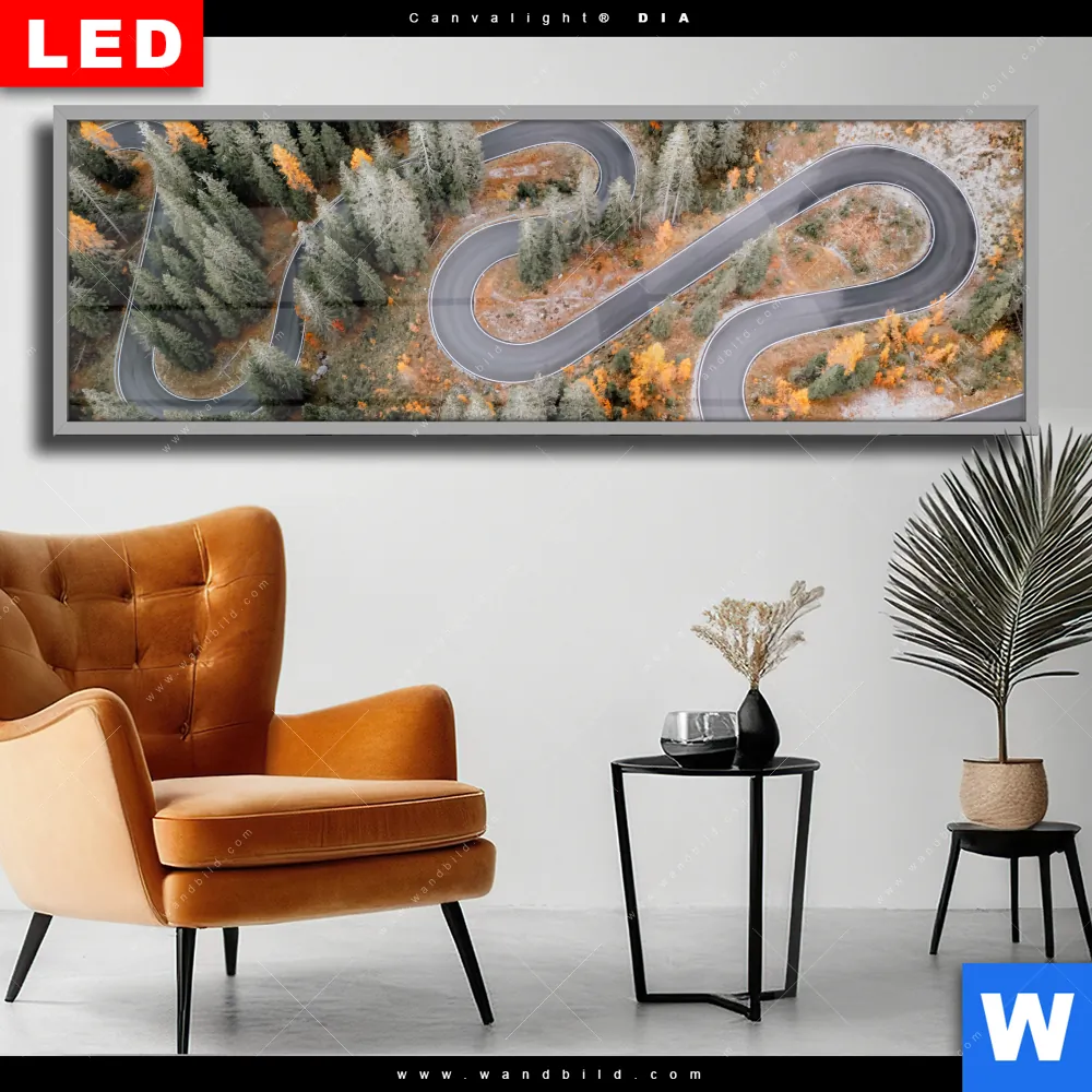 Wechselmotiv Acrylglas Canvalight® DIA | Wald & Straße von oben | Panorama