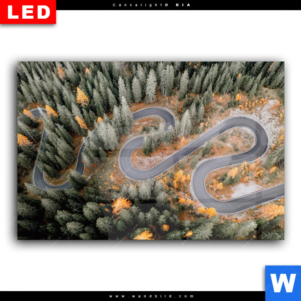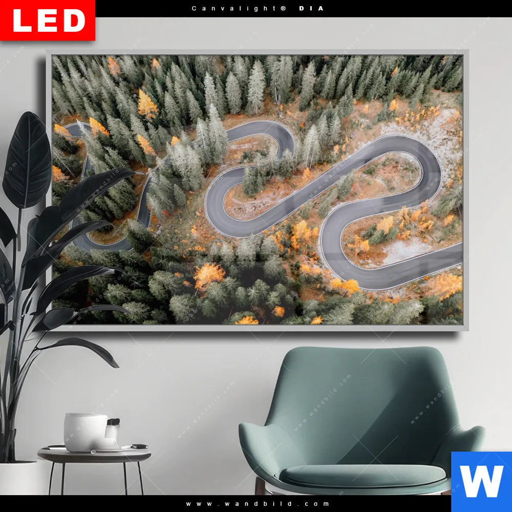 Wechselmotiv Acrylglas Canvalight® DIA | Wald & Straße von oben | Querformat