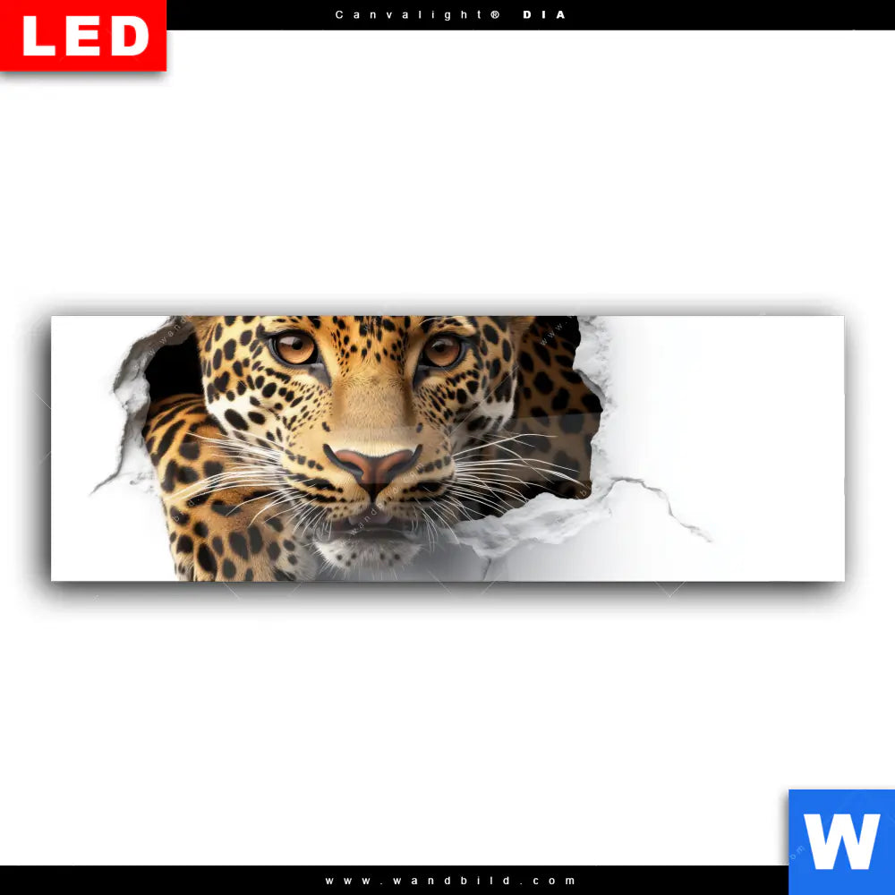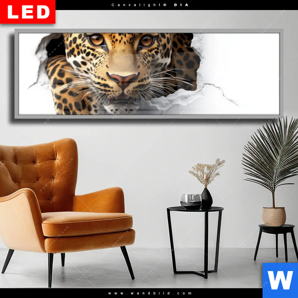 Wechselmotiv Acrylglas Canvalight® DIA | Wanddurchbruch - Leopard | Panorama