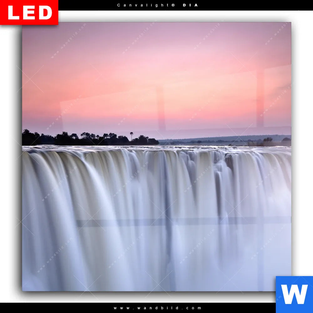 Wechselmotiv Acrylglas Canvalight® DIA | Wasserfall bei Abendröte | Quadrat