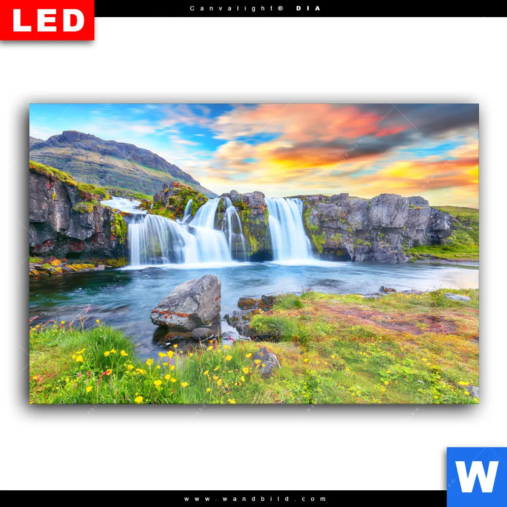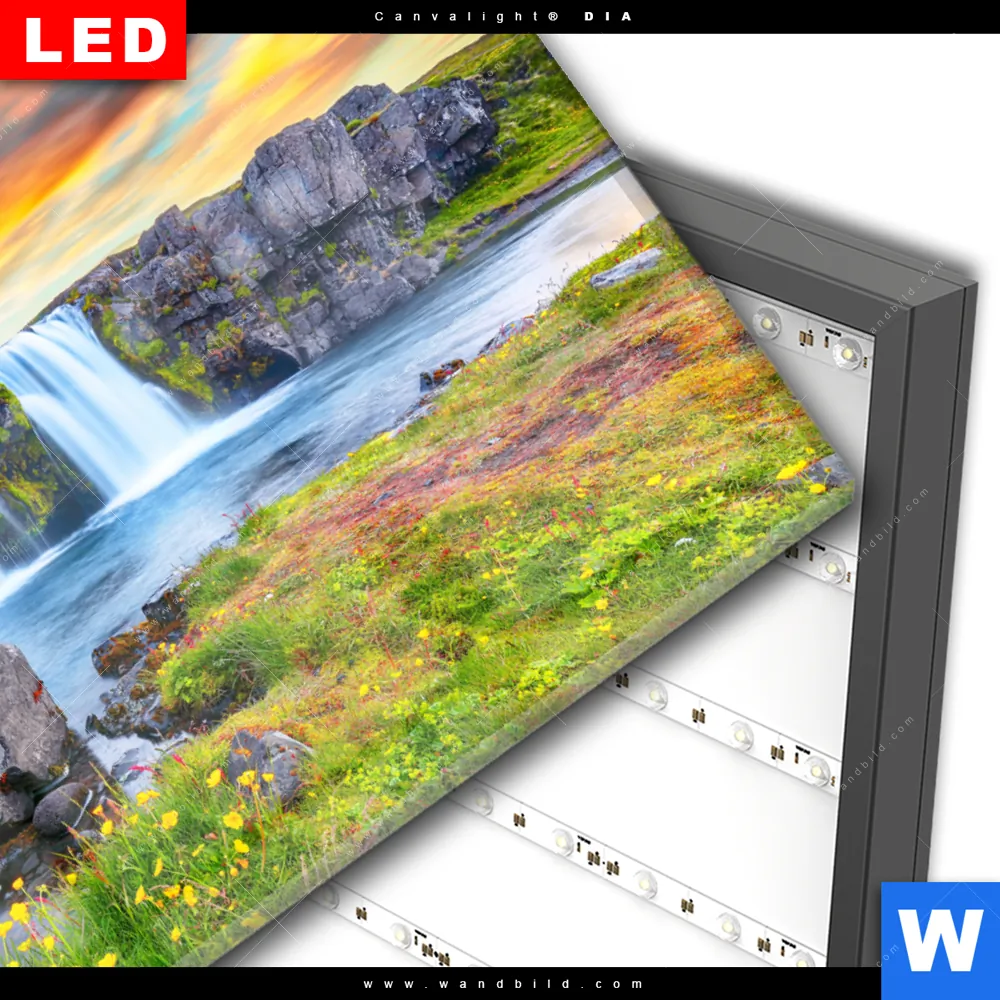 Wechselmotiv Acrylglas Canvalight® DIA | Wasserfall bei Sonnenuntergang | Querformat
