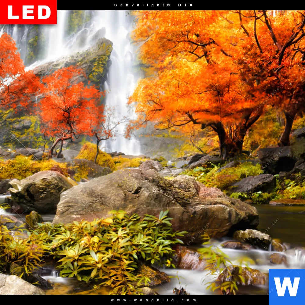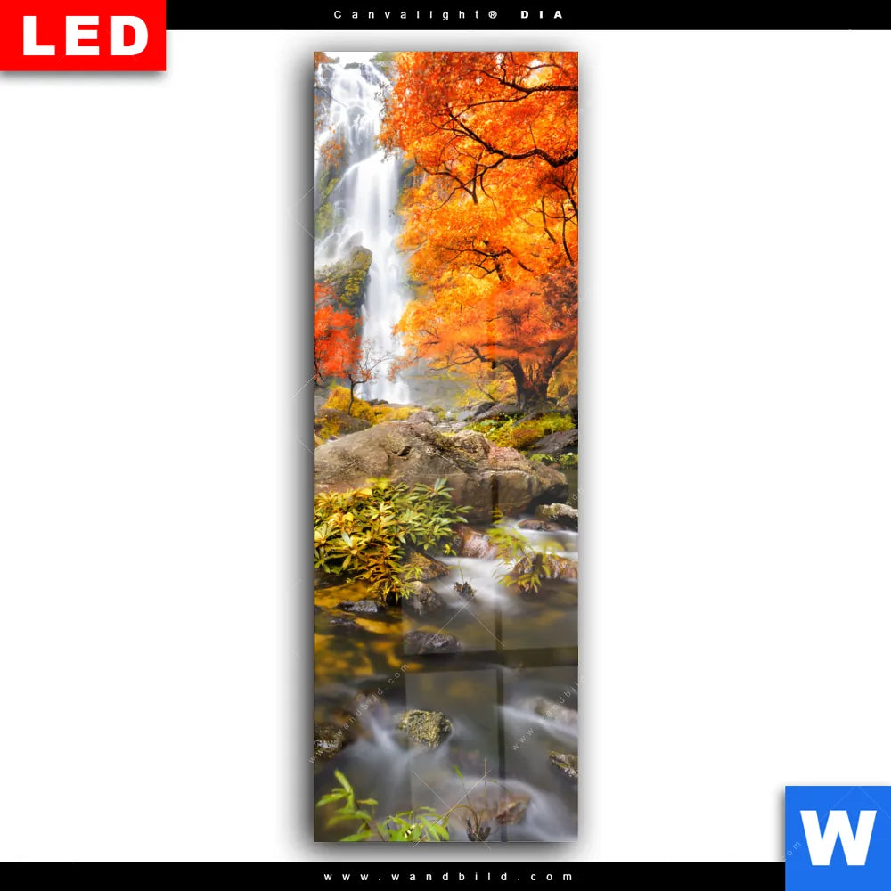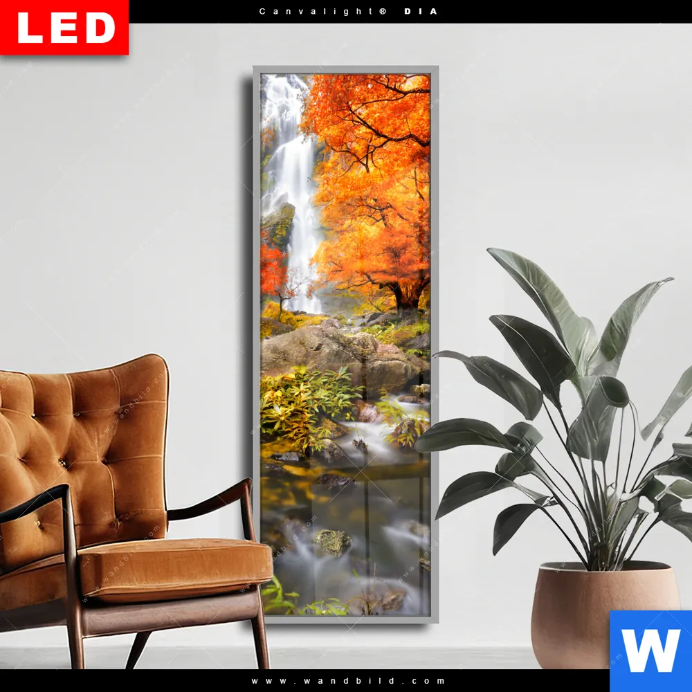 Wechselmotiv Acrylglas Canvalight® DIA | Wasserfall in Herbstlandschaft | Schmal