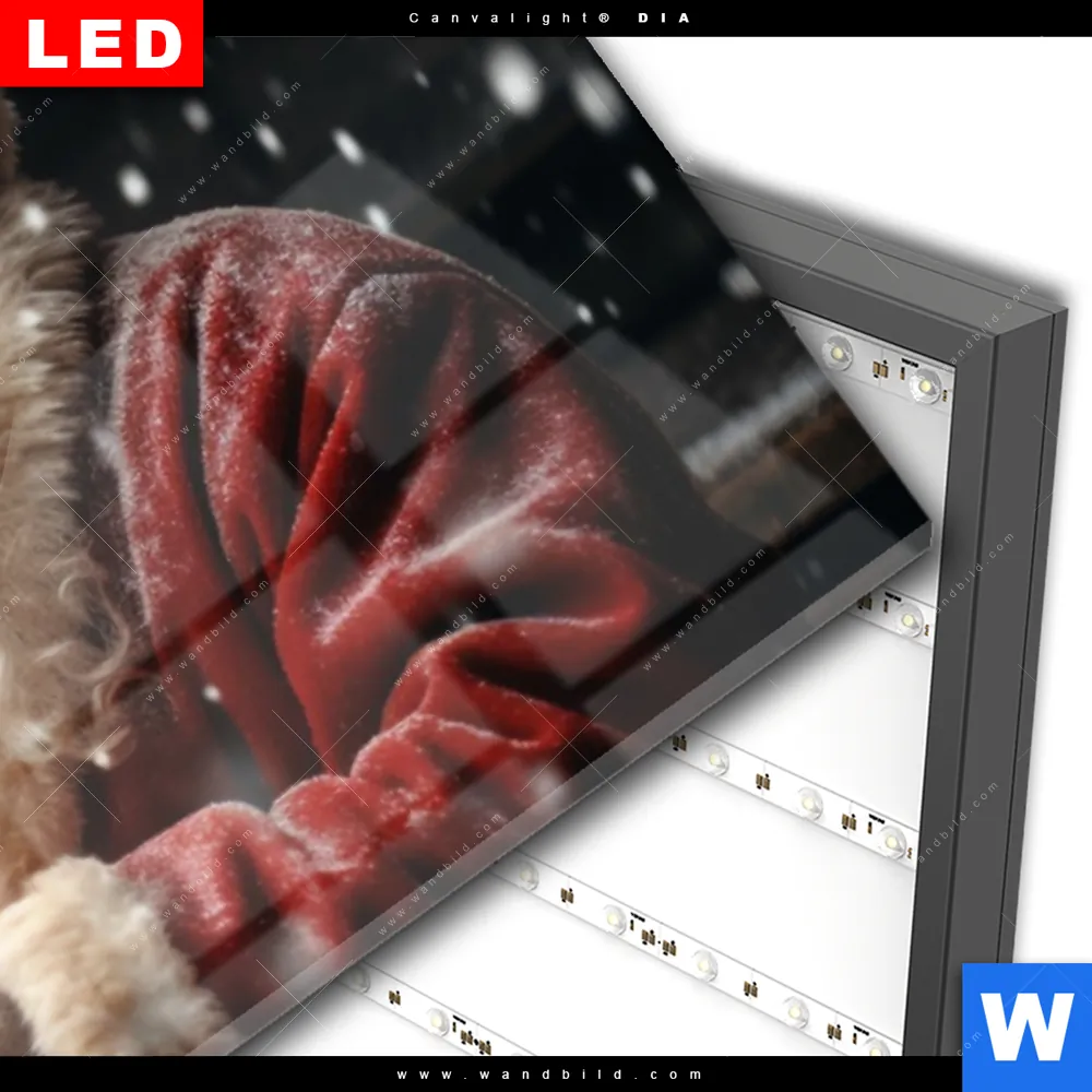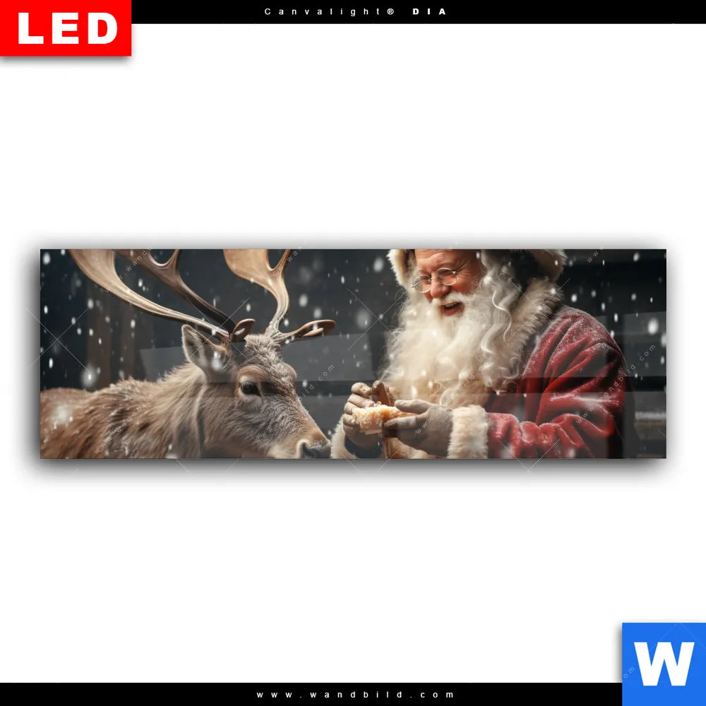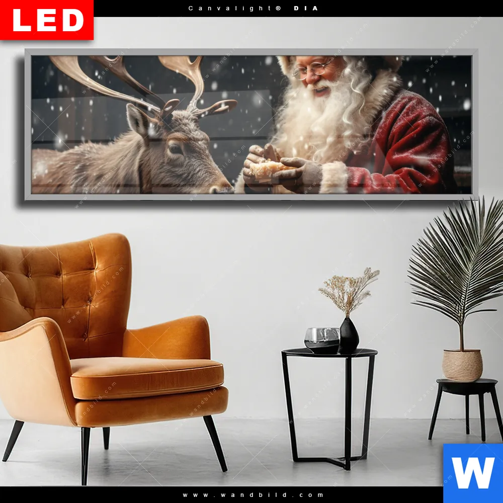 Wechselmotiv Acrylglas Canvalight® DIA | Weihnachtsmann füttert Rentier | Panorama