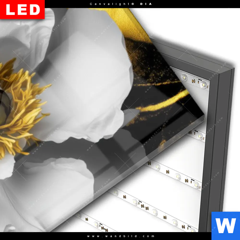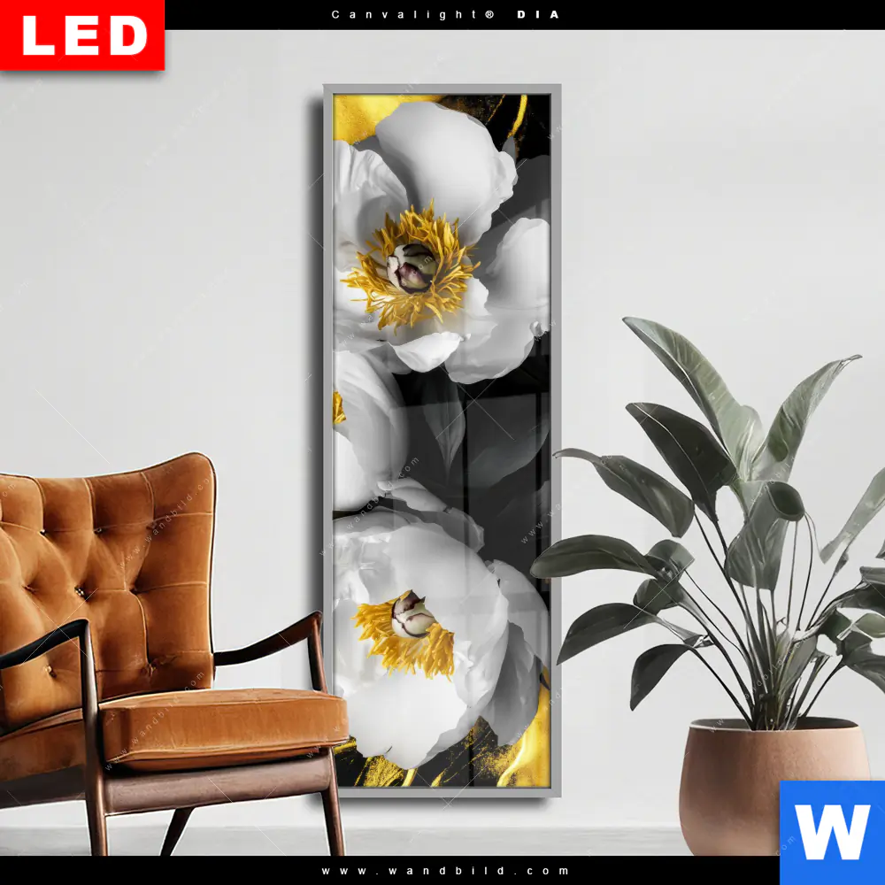 Wechselmotiv Acrylglas Canvalight® DIA | Weiße Blumen mit Gold | Schmal