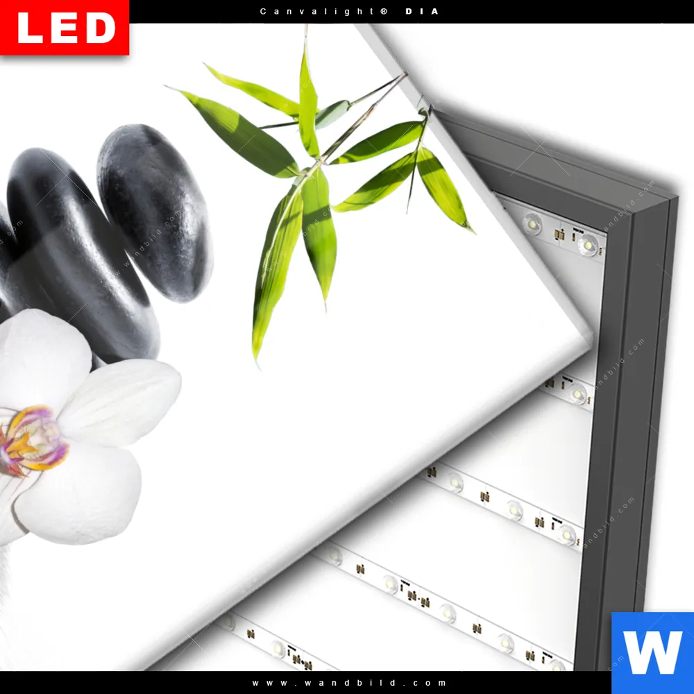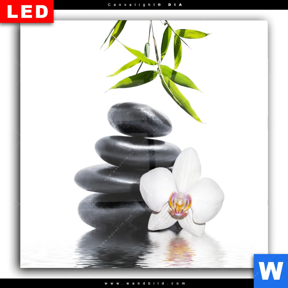 Wechselmotiv Acrylglas Canvalight® DIA | Weiße Orchidee & Zensteine | Quadrat