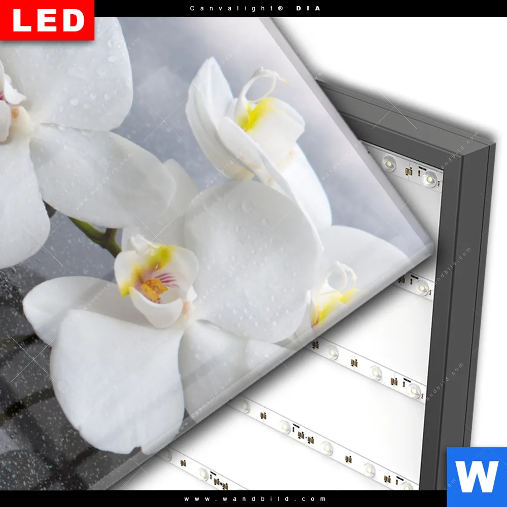 Wechselmotiv Acrylglas Canvalight® DIA | Weiße Orchideen | Quadrat