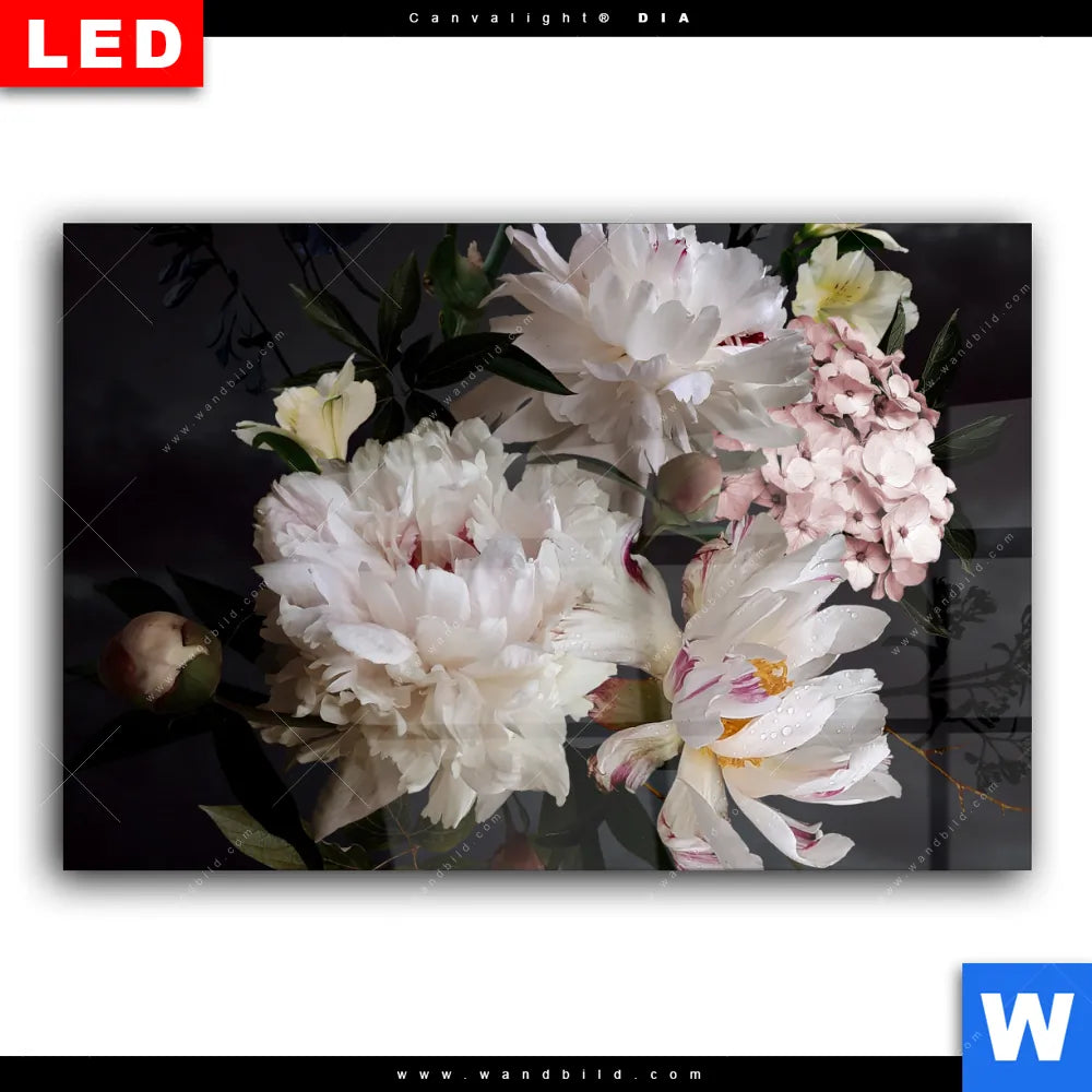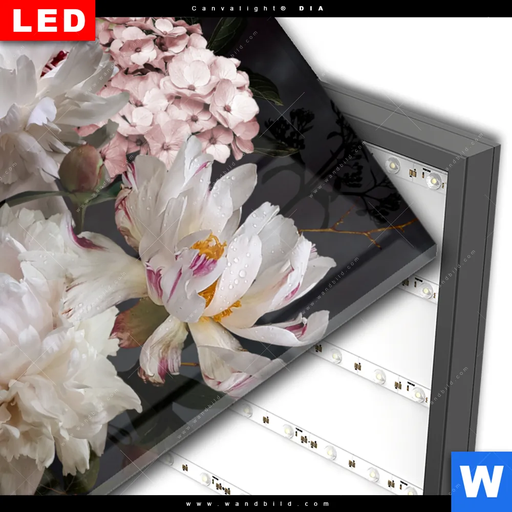 Wechselmotiv Acrylglas Canvalight® DIA | Weiße Pfingstrosen | Querformat
