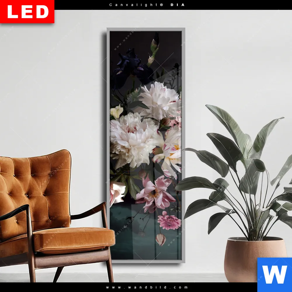 Wechselmotiv Acrylglas Canvalight® DIA | Weiße Pfingstrosen | Schmal