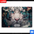 Wechselmotiv Acrylglas Canvalight® DIA | Weißer Tiger mit blauen Augen zwischen Blumen | Querformat