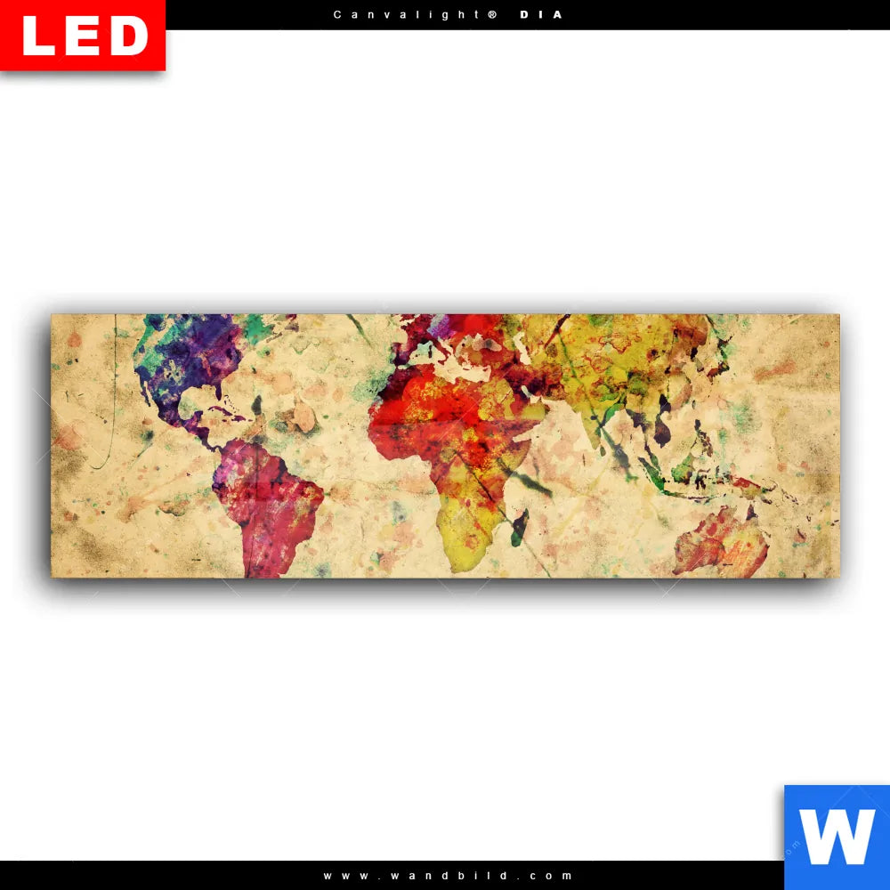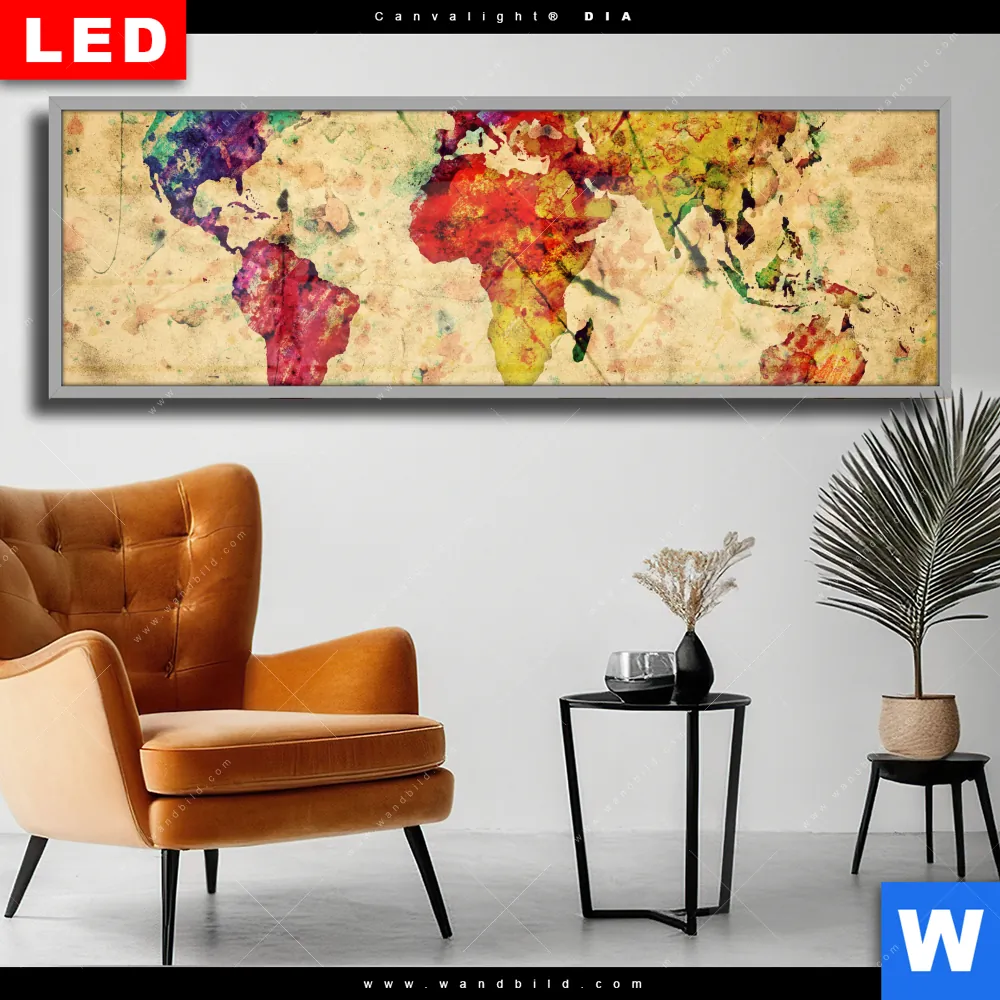 Wechselmotiv Acrylglas Canvalight® DIA | Weltkarte Retro Bunt | Panorama