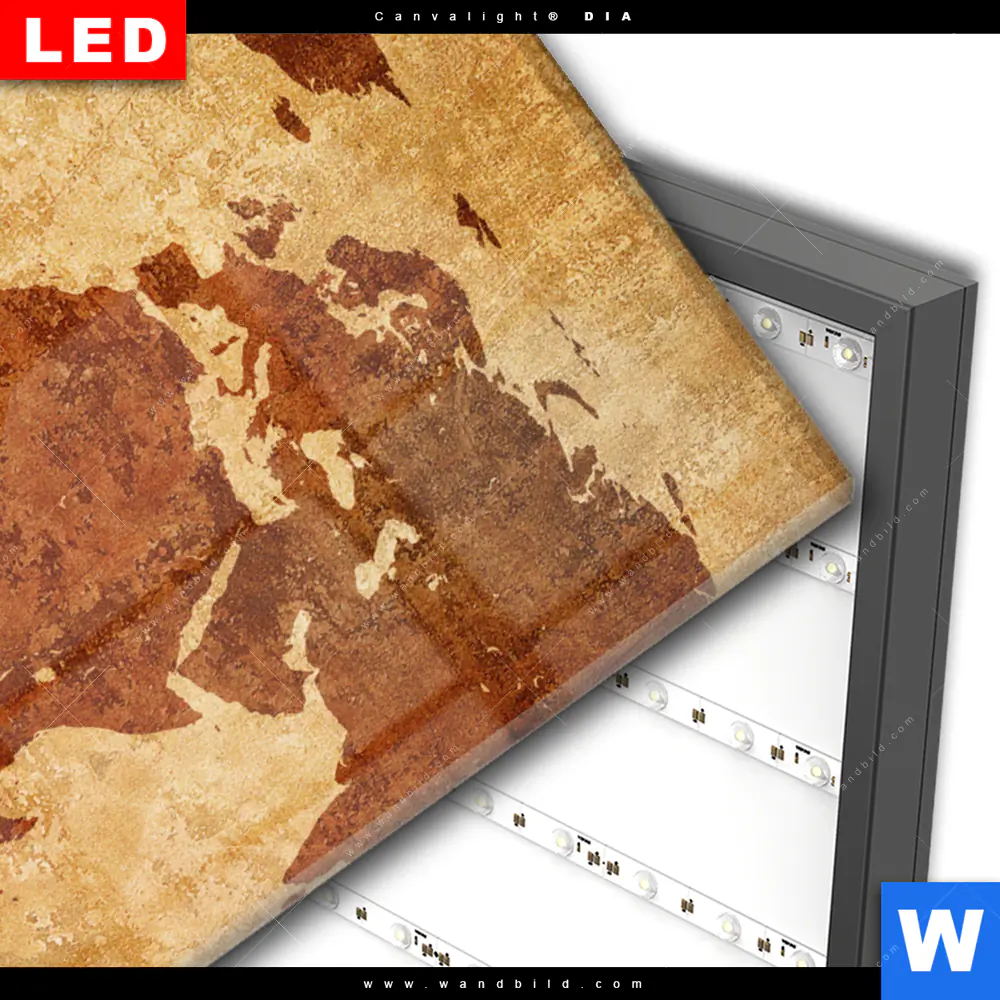 Wechselmotiv Acrylglas Canvalight® DIA | Weltkarte Rostoptik | Hochformat