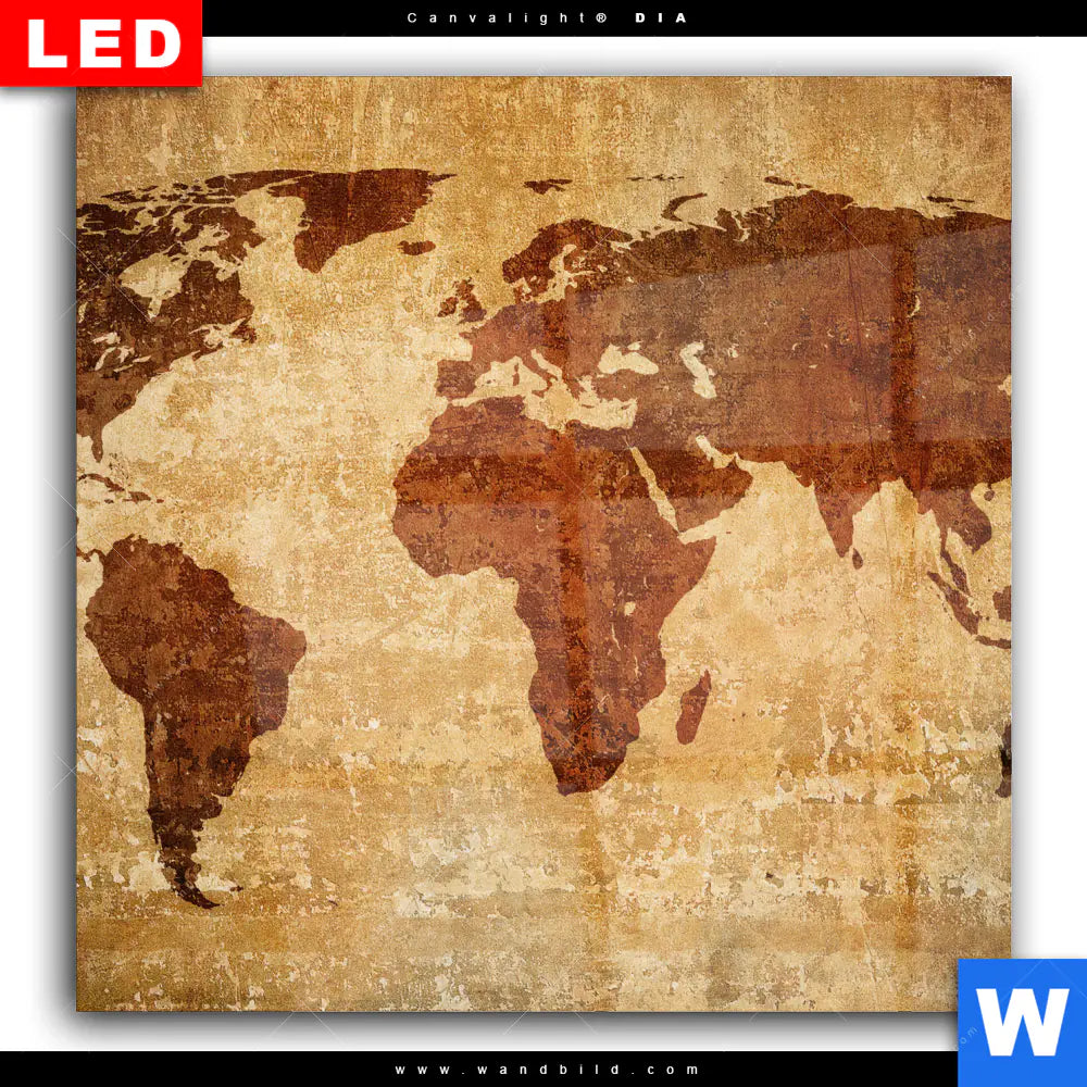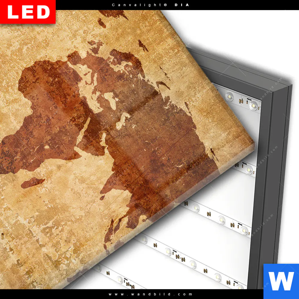 Wechselmotiv Acrylglas Canvalight® DIA | Weltkarte Rostoptik | Quadrat