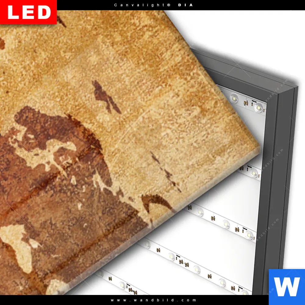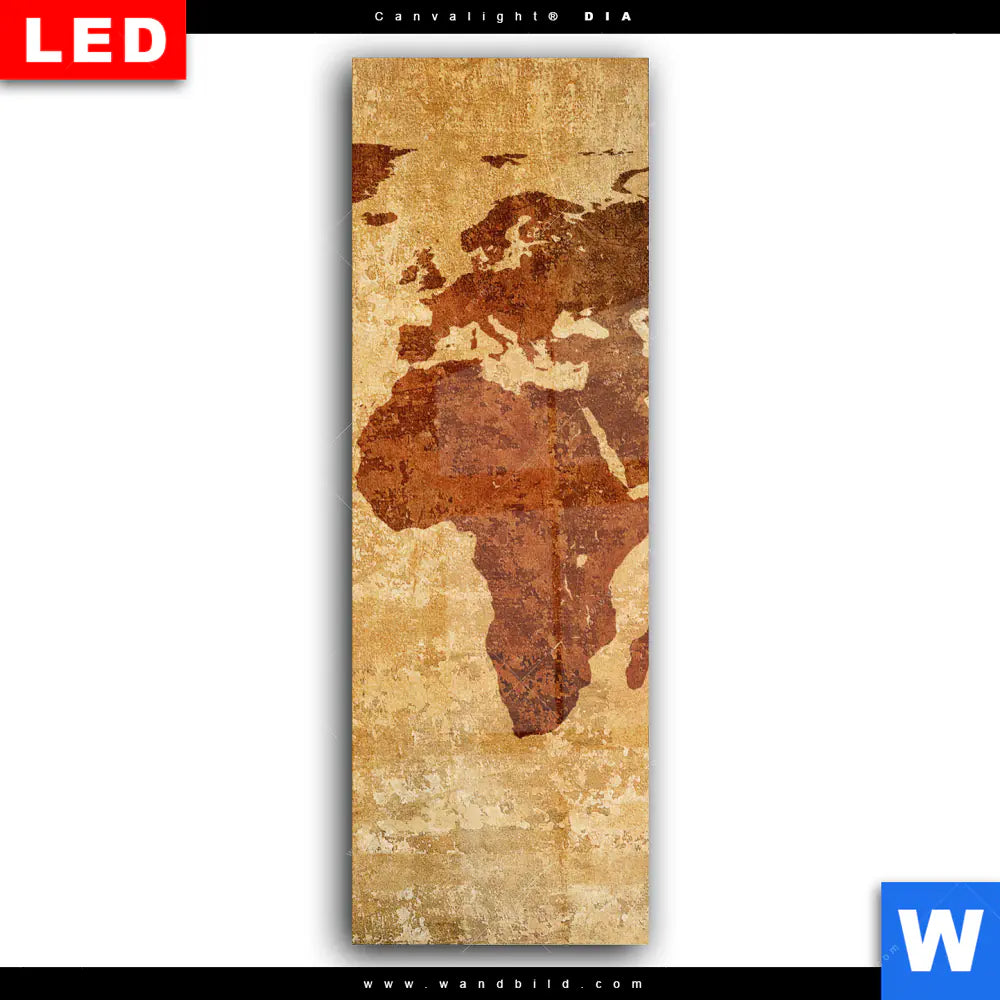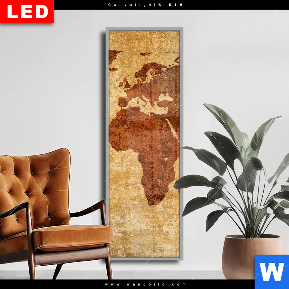 Wechselmotiv Acrylglas Canvalight® DIA | Weltkarte Rostoptik | Schmal