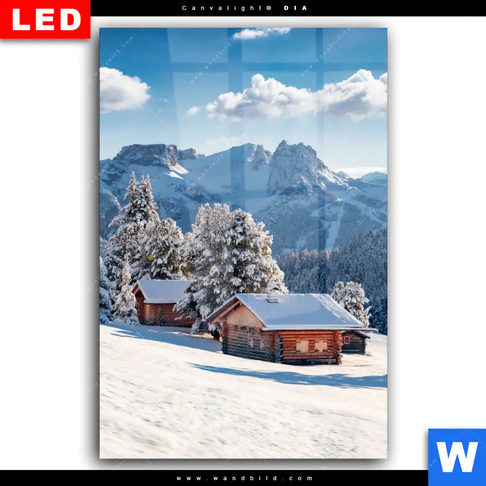 Wechselmotiv Acrylglas Canvalight® DIA | Winteridylle in den Bergen | Hochformat