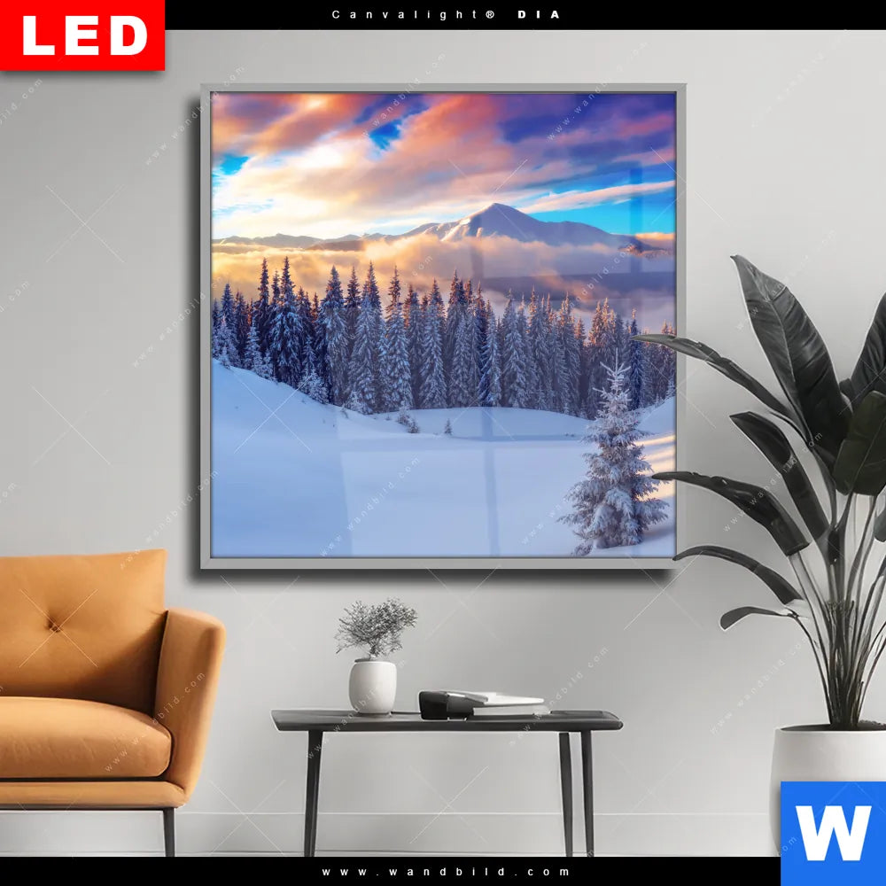 Wechselmotiv Acrylglas Canvalight® DIA | Winterliches Gebirge | Quadrat