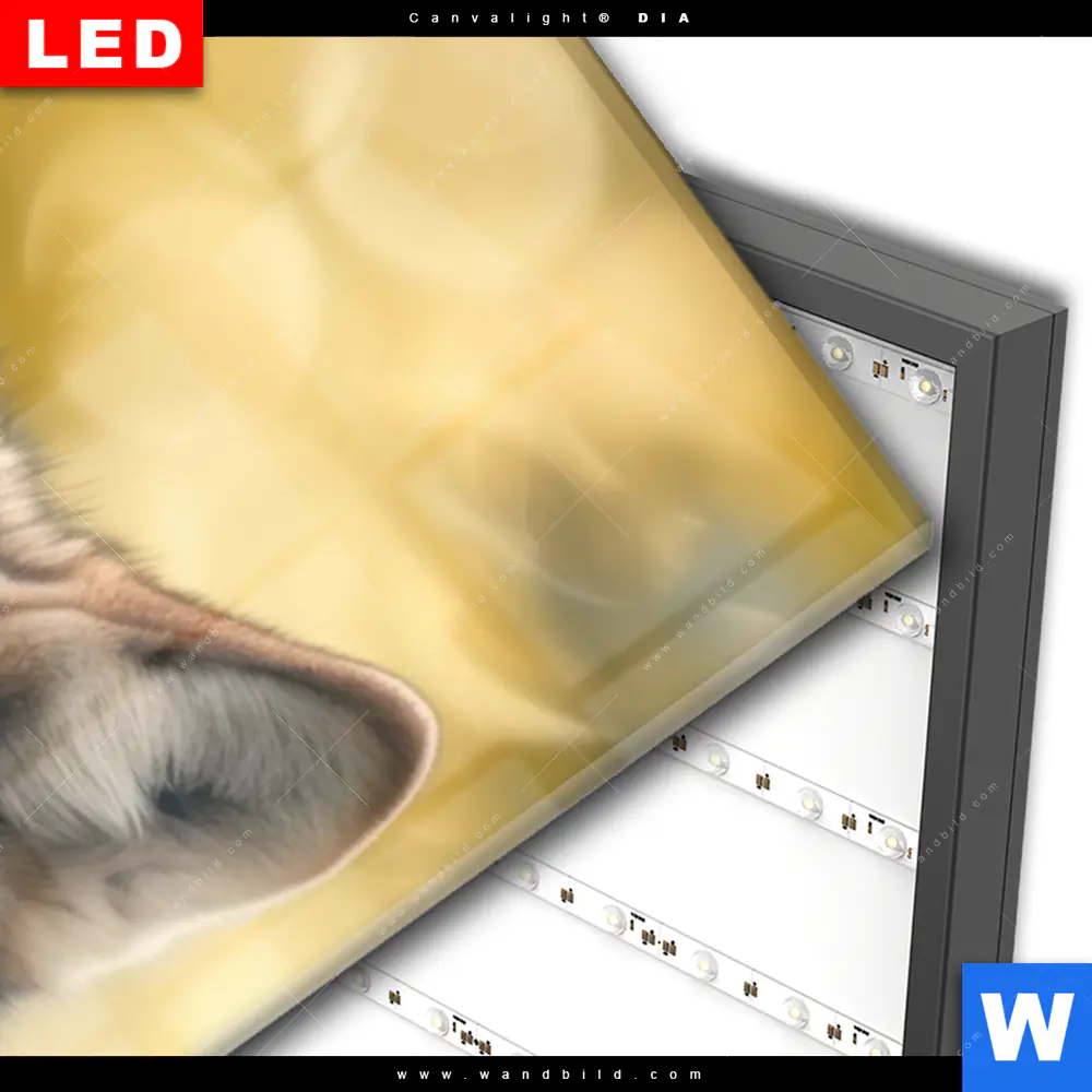 BEACHTE: Du solltest bereits ein Canvalight® DIA Leuchtbild mit austauschbarem Acrylglas-Motiv besitzen! Im Lieferumfang ist nur ein Wechsel-Acrylglas-Druck ohne Leuchtrahmen enthalten. Der Abdeckwinkel im Frontbereich des LED Bildes deckt umlaufend ca. 19 mm des Motives ab. Bei eigenen Motiven bitte darauf achten, wichtige Elemente in ausreichender Entfernung vom Rand zu platzieren, damit diese nicht verdeckt werden.