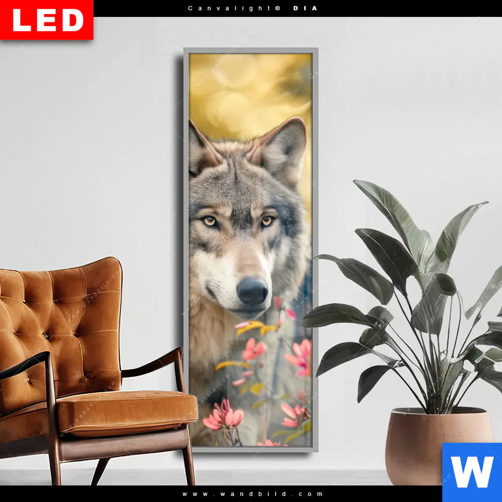 Wechselmotiv Acrylglas Canvalight® DIA | Wolfsblick im Frühling | Schmal