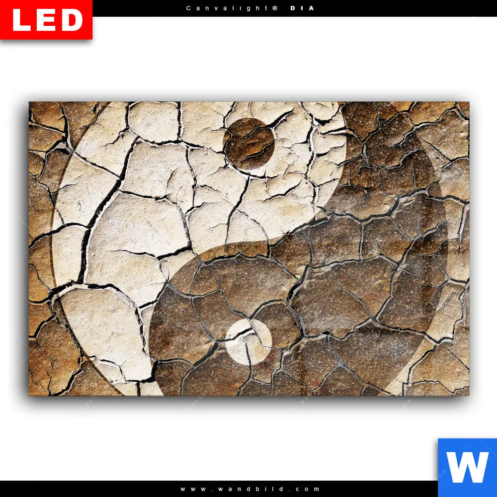 Wechselmotiv Acrylglas Canvalight® DIA | Yin Yang auf rissiger Erde | Querformat