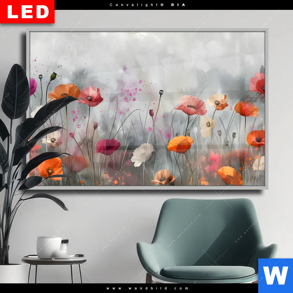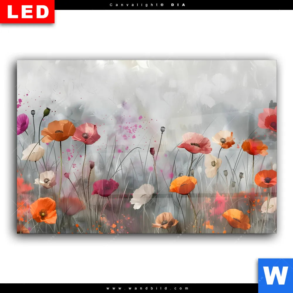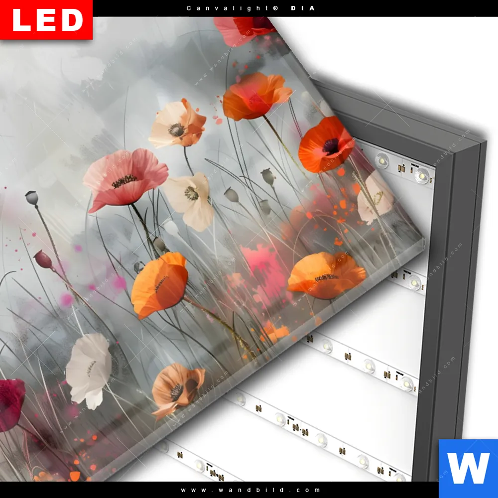 Wechselmotiv Acrylglas Canvalight® DIA | Zarte Mohnblumen im Wind | Querformat