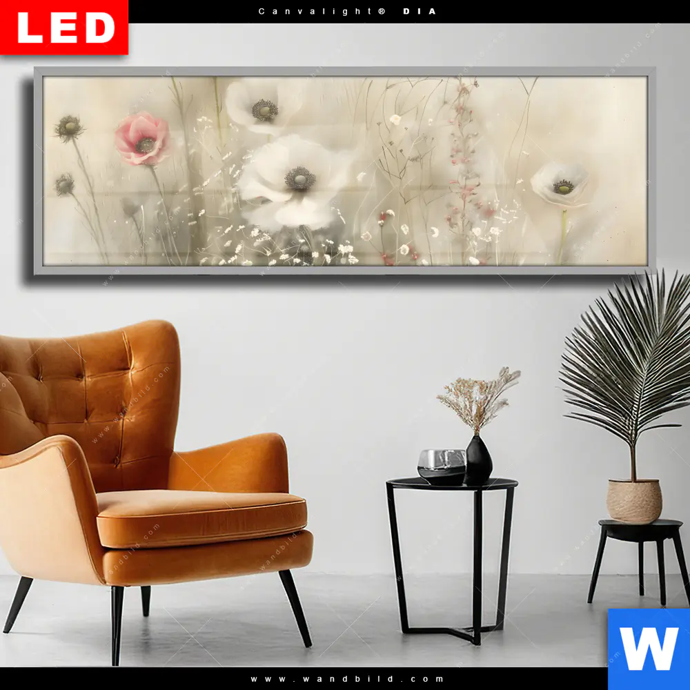 Wechselmotiv Acrylglas Canvalight® DIA | Zarte Wildblumen in Pastelltönen | Panorama