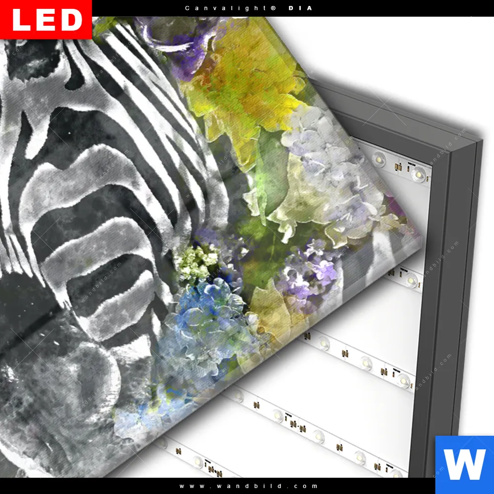 Wechselmotiv Acrylglas Canvalight® DIA | Zebra & Blumen | Querformat