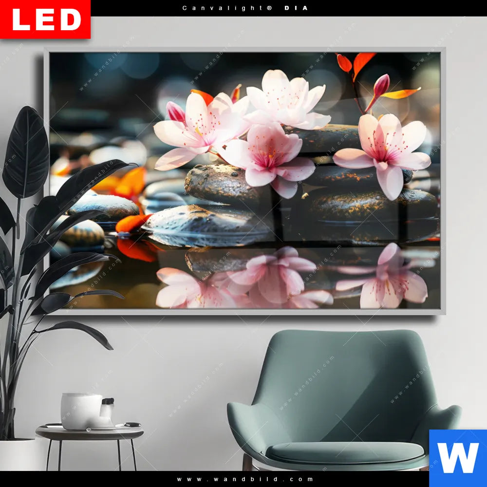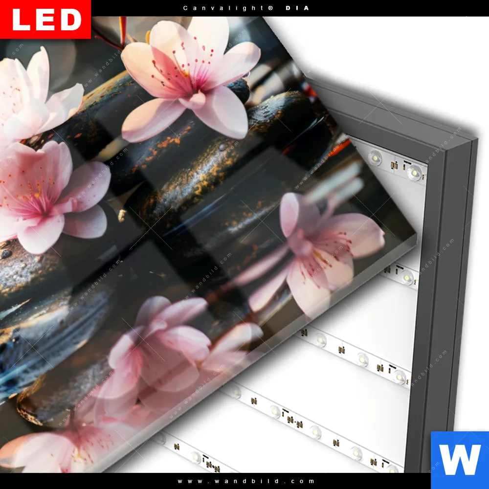 Wechselmotiv Acrylglas Canvalight® DIA | Zen Steine mit Blumen | Querformat