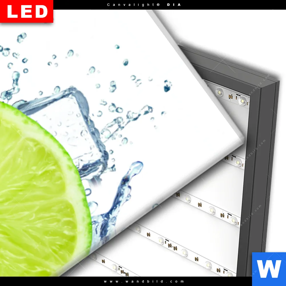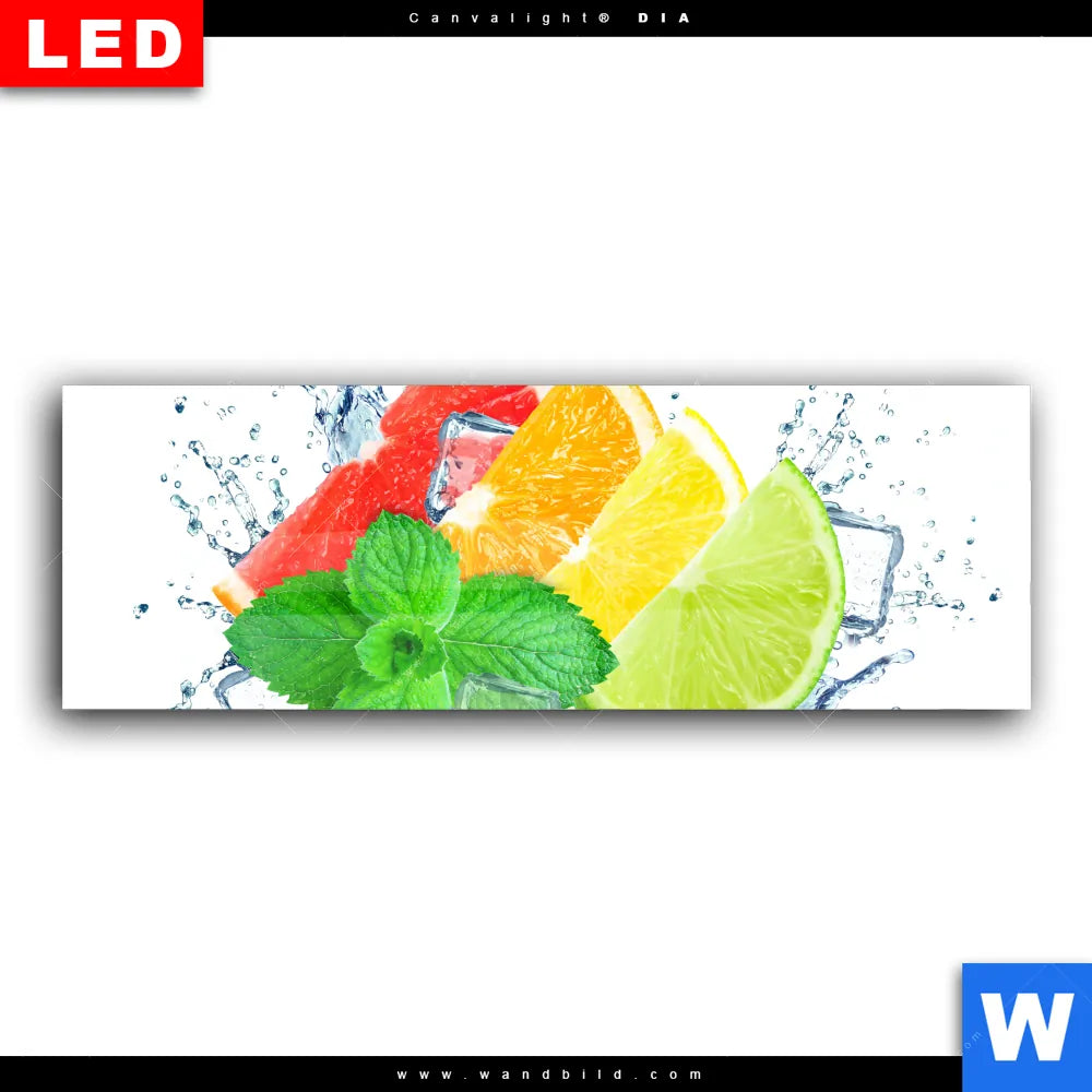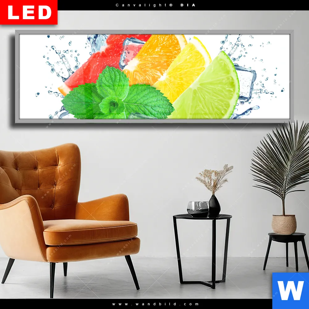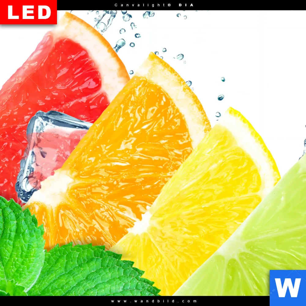 Wechselmotiv Acrylglas Canvalight® DIA | Zitrusfrüchte auf Eis | Panorama