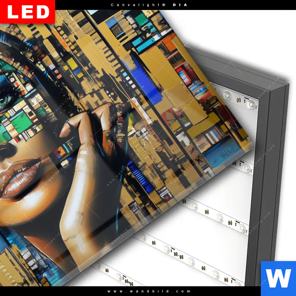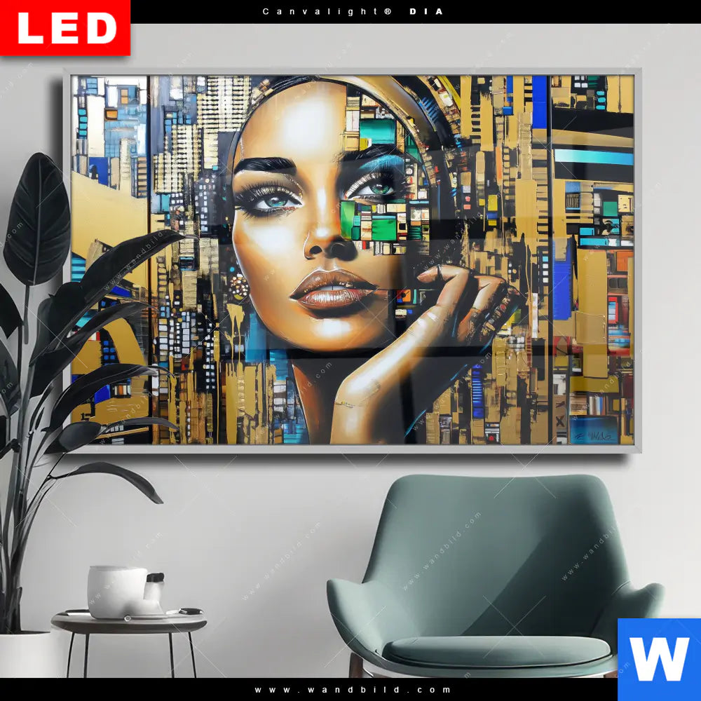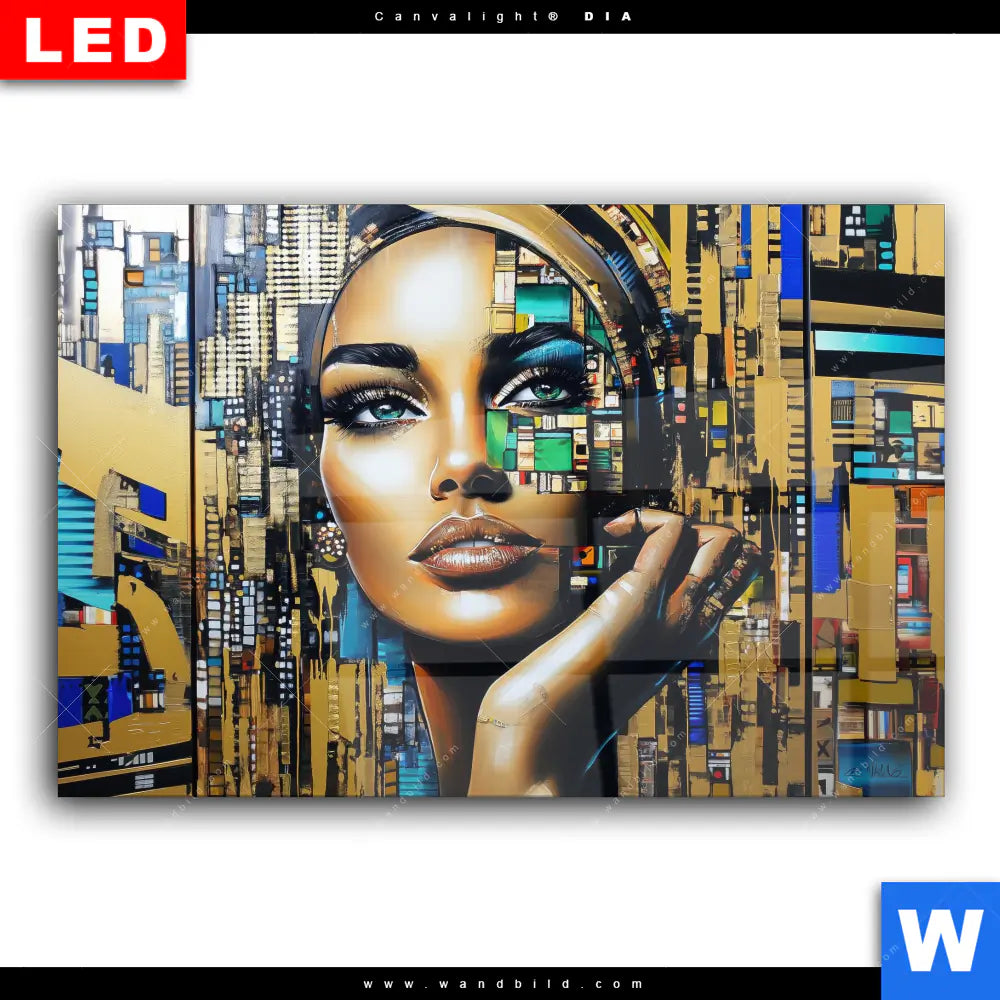 Wechselmotiv Acrylglas Canvalight® DIA | Zoe - Mosaikgesicht im Großstadtlicht | Querformat
