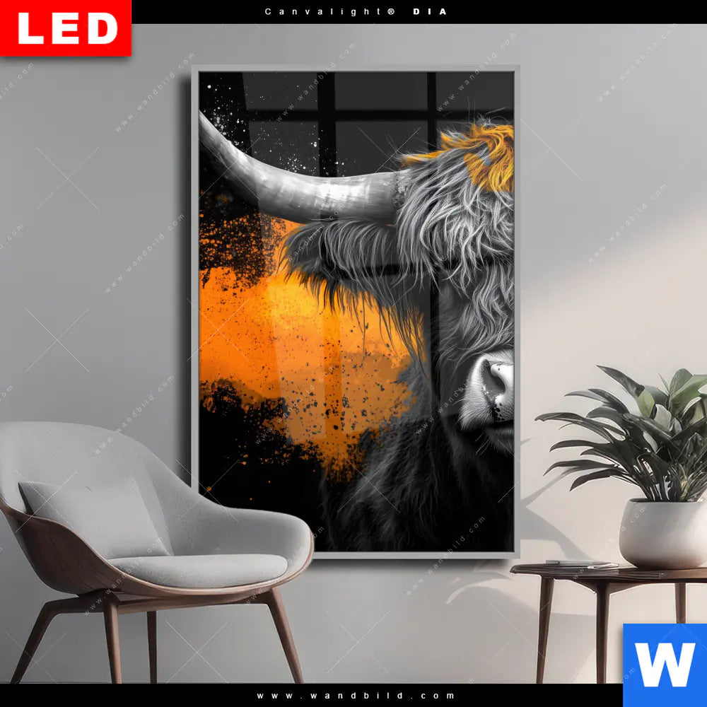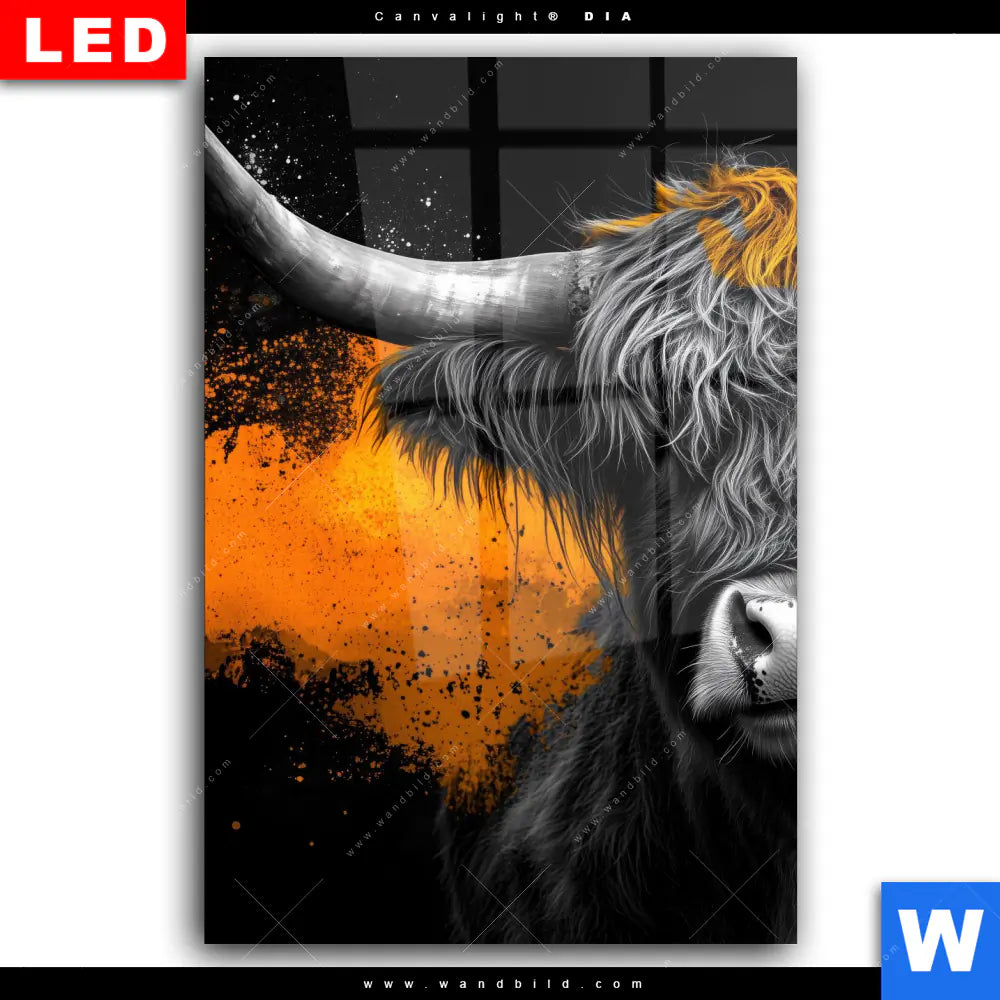 Wechselmotiv Acrylglas Canvalight® DIA | Zotteliges Hochland-Rind | Hochformat