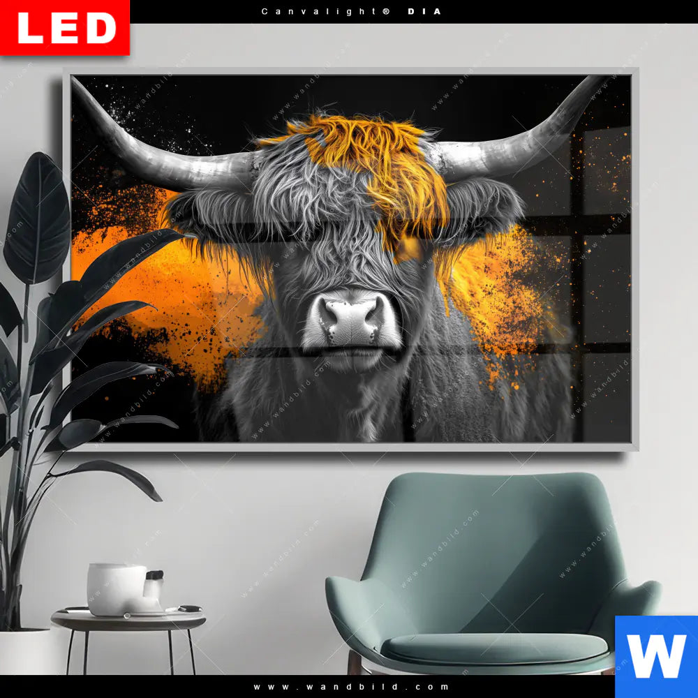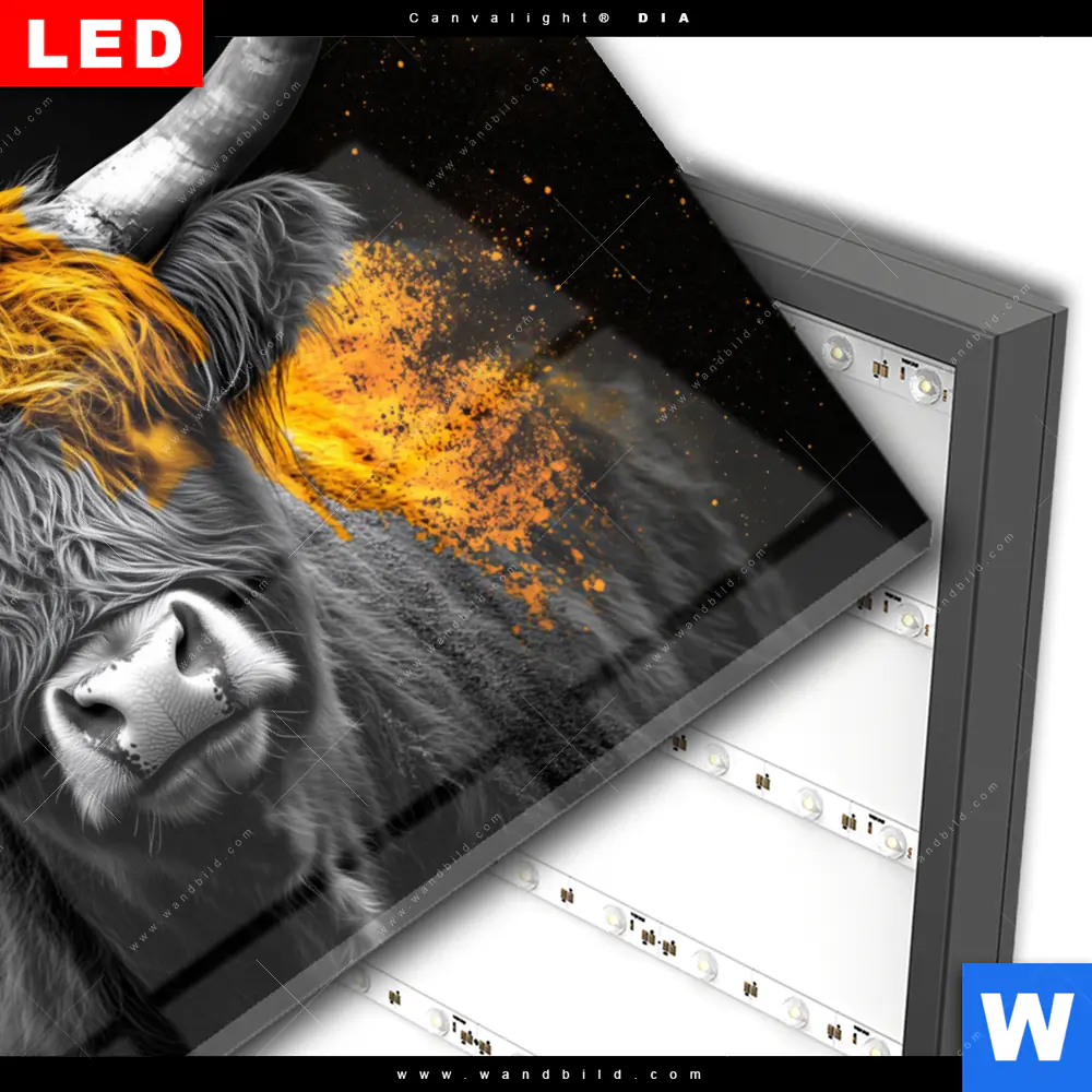 Wechselmotiv Acrylglas Canvalight® DIA | Zotteliges Hochland-Rind | Querformat