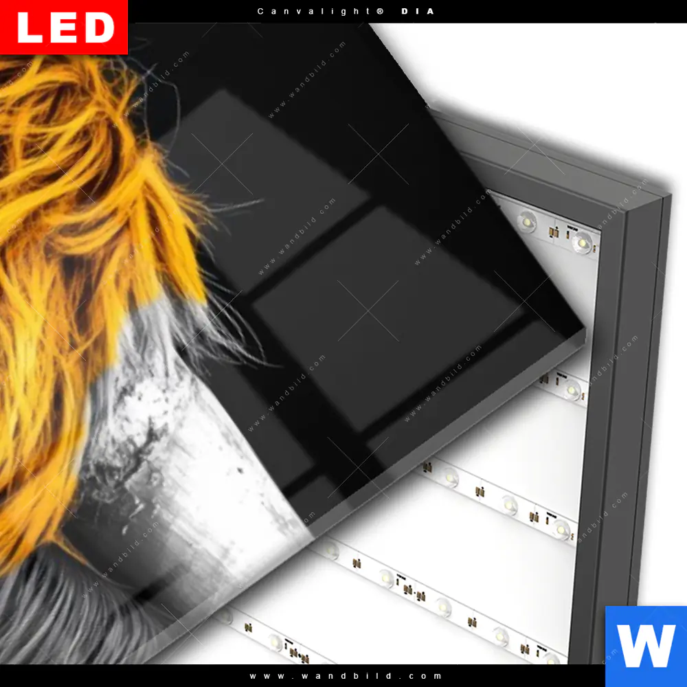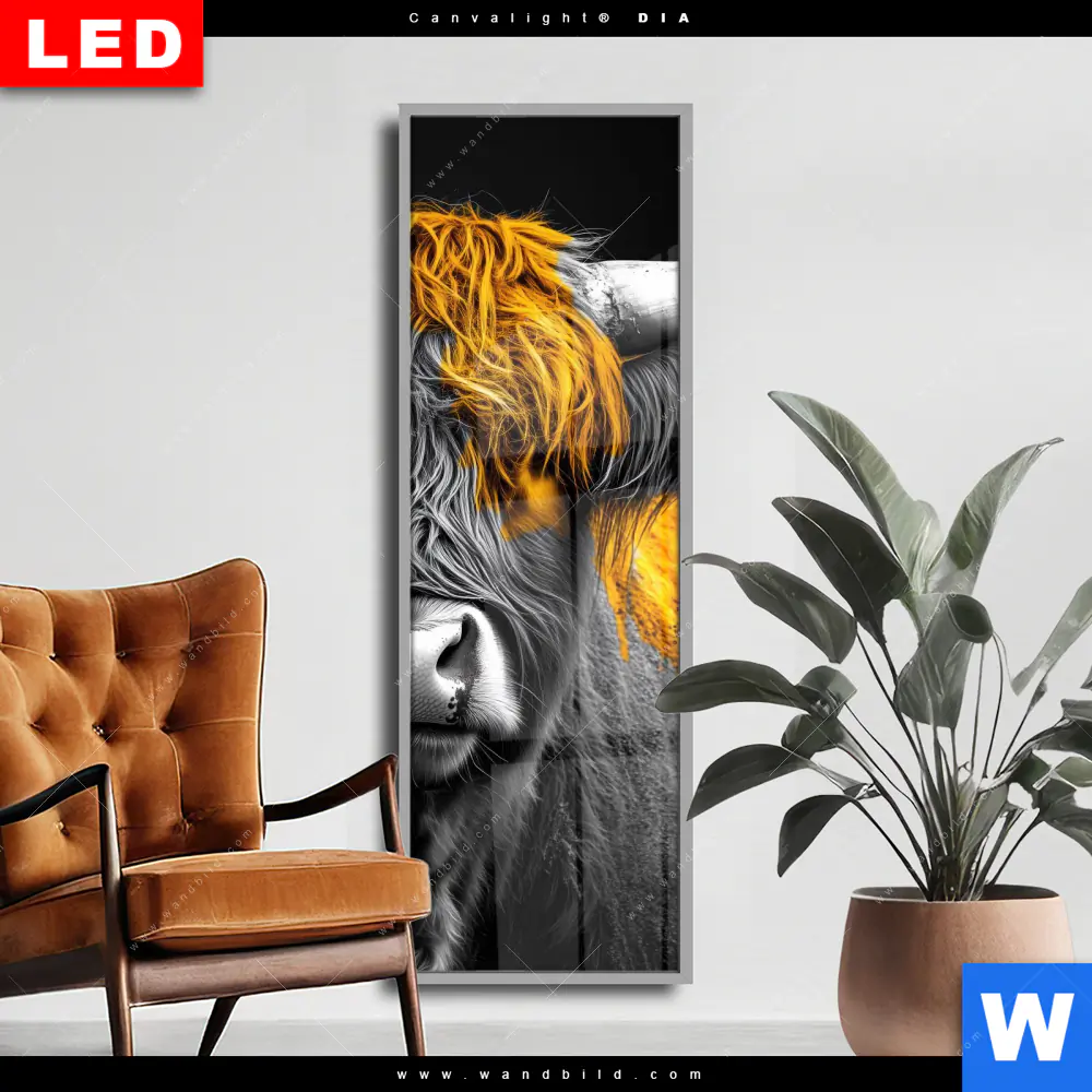 Wechselmotiv Acrylglas Canvalight® DIA | Zotteliges Hochland-Rind | Schmal
