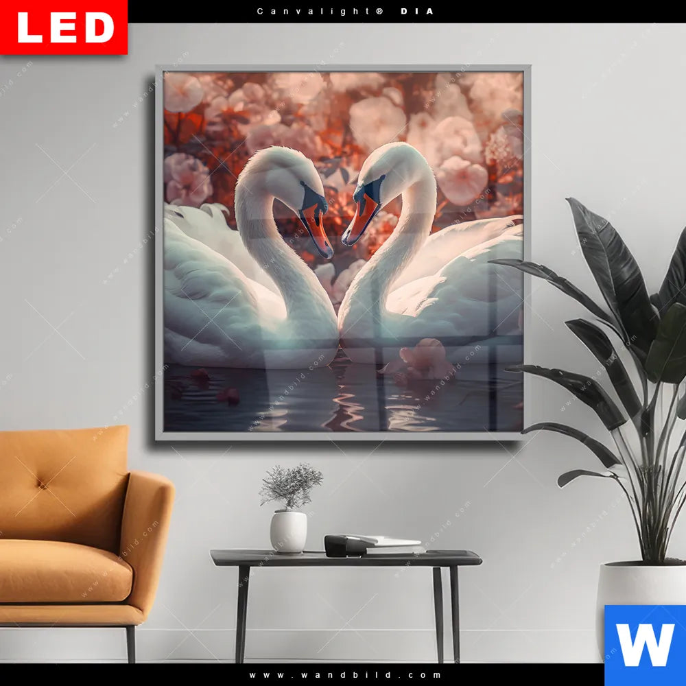 Wechselmotiv Acrylglas Canvalight® DIA | Zwei Schwäne im Wasser | Quadrat