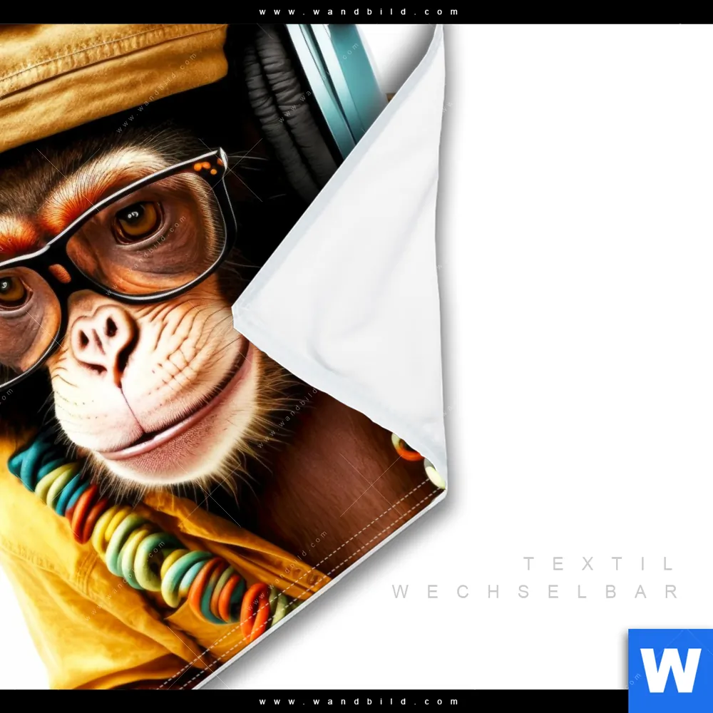 Wechselmotiv Textil | Affe mit Kopfhörern & Brille | Quadrat