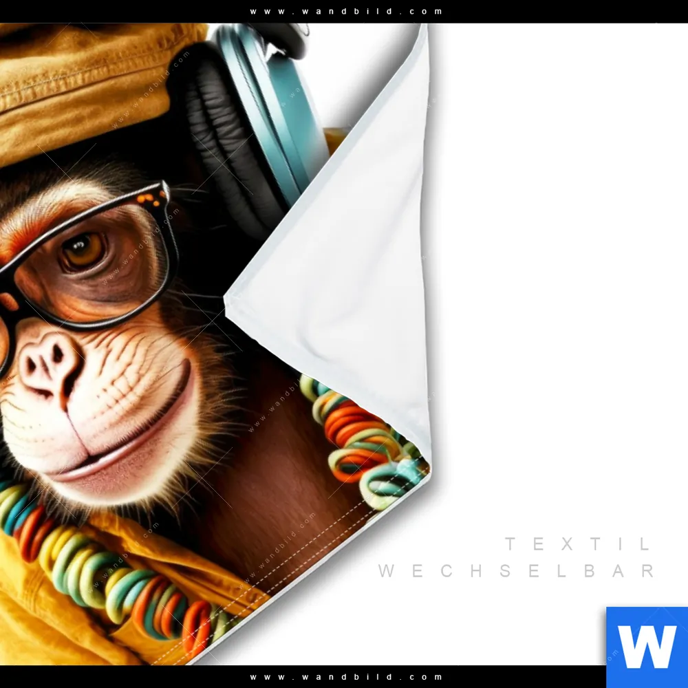 Wechselmotiv Textil | Affe mit Kopfhörern & Brille | Querformat