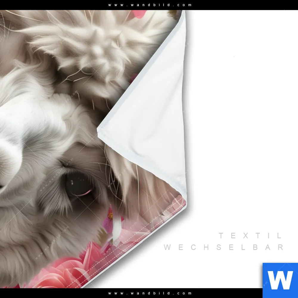 Wechselmotiv Textil | Alpaka mit Blumen | Hochformat