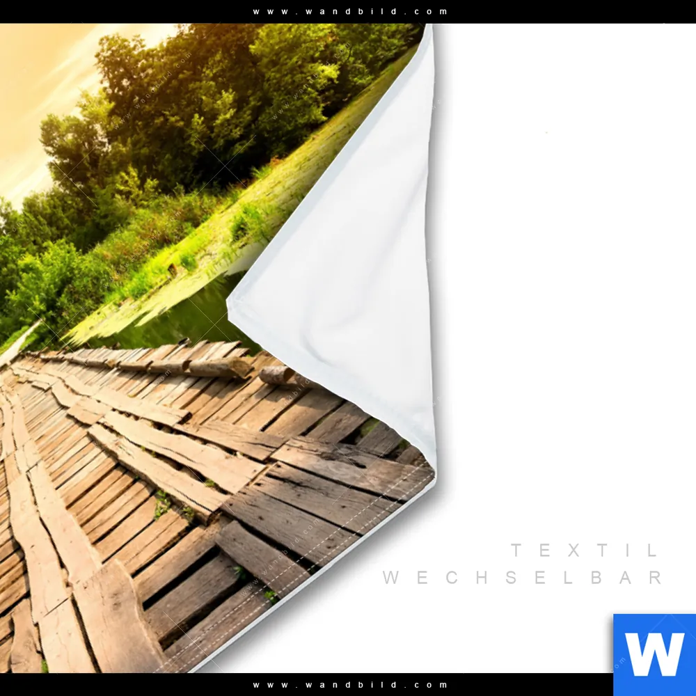 Wechselmotiv Textil | Alte Brücke am Fluss | Querformat