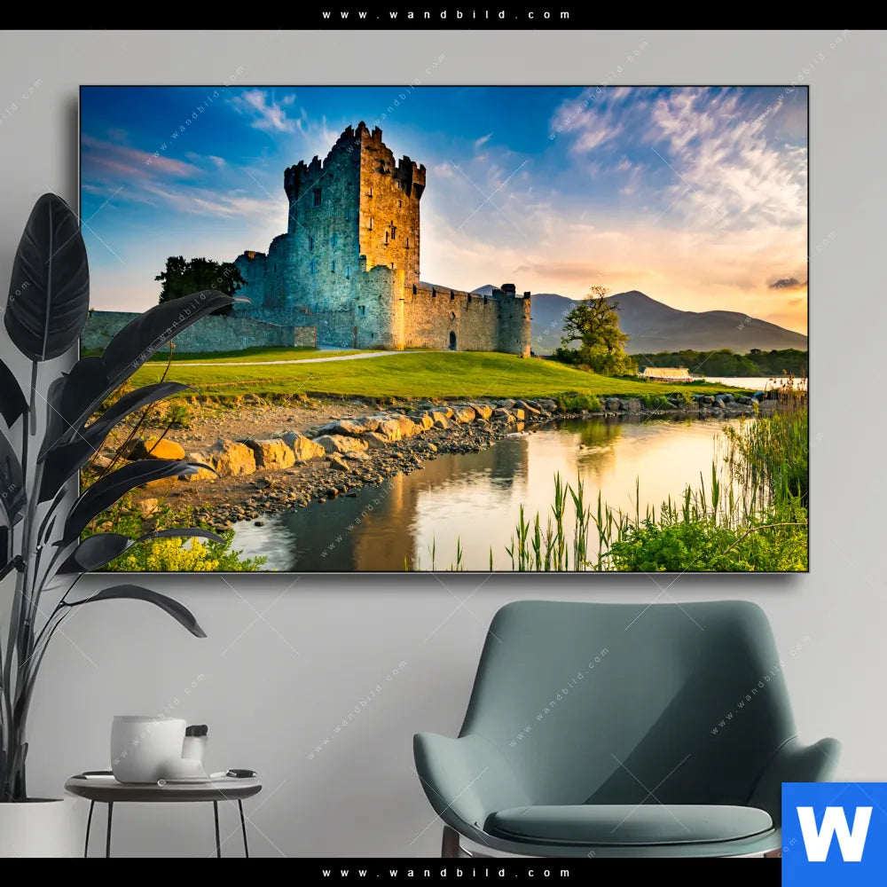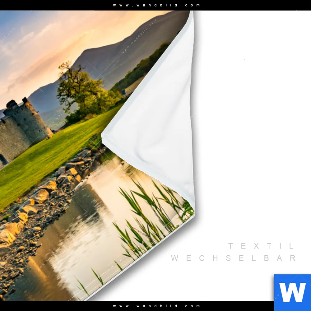 Wechselmotiv Textil | Alte Burg mit See | Querformat