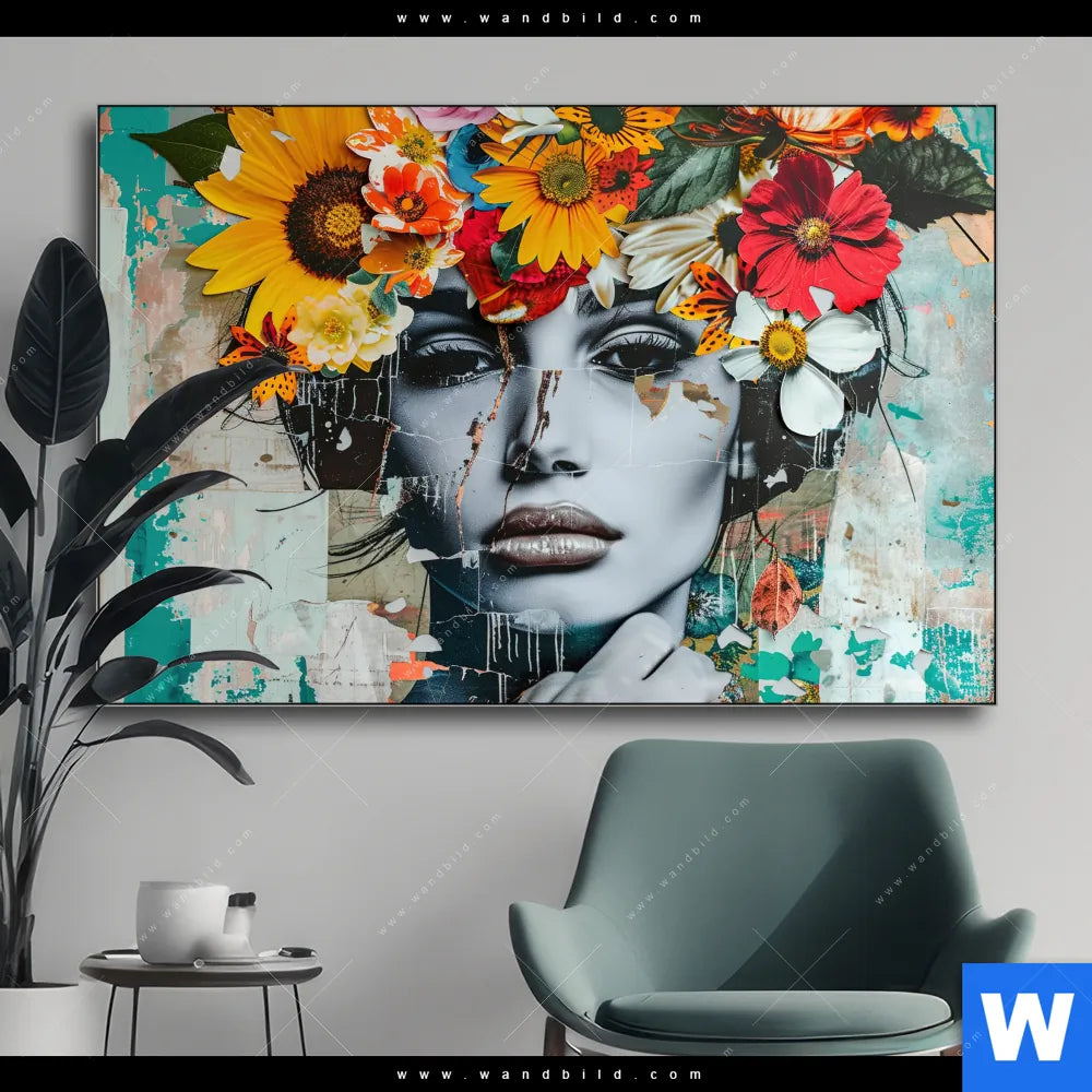 Wechselmotiv Textil | Angelina - Frau mit Blumen im Haar | Querformat