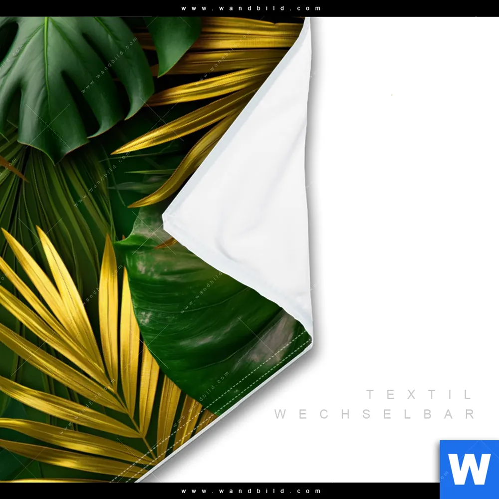 Wechselmotiv Textil | Blätter Gold Grün | Querformat