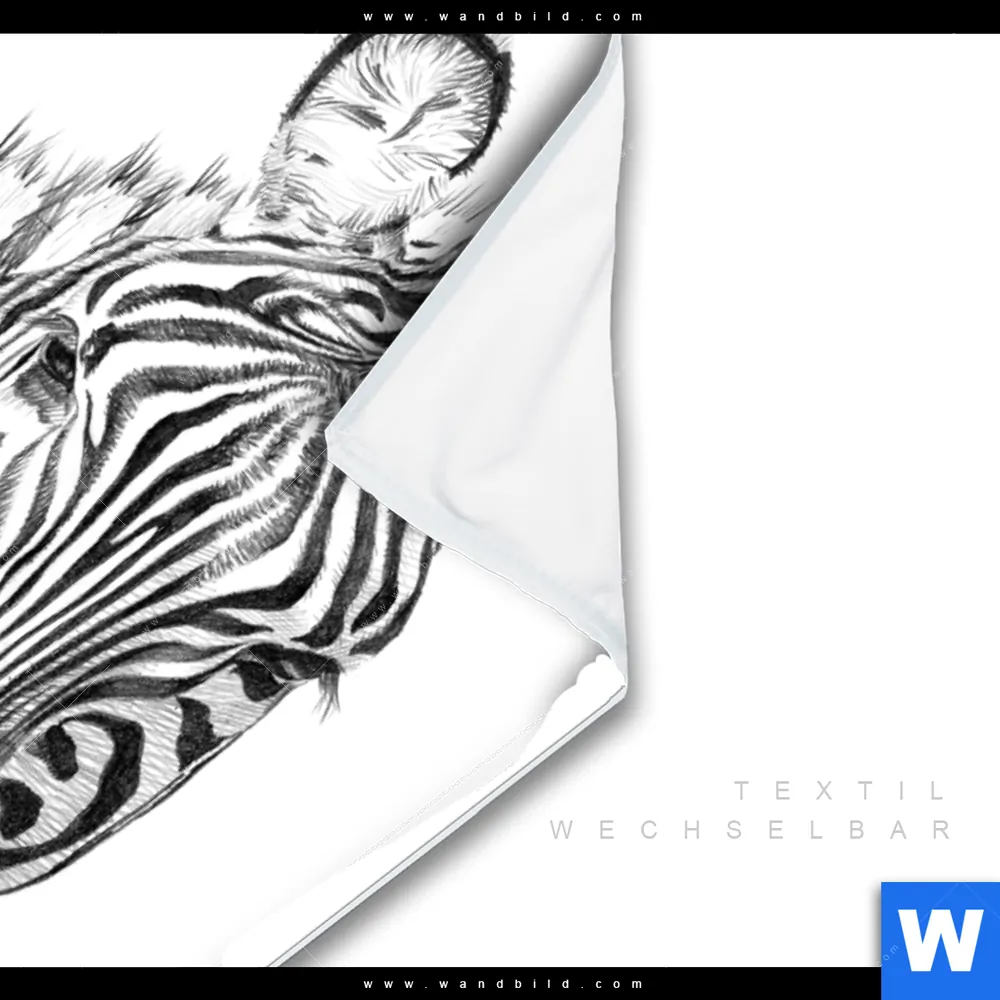 Wechselmotiv Textil | Bleistiftzeichnung Zebra | Hochformat