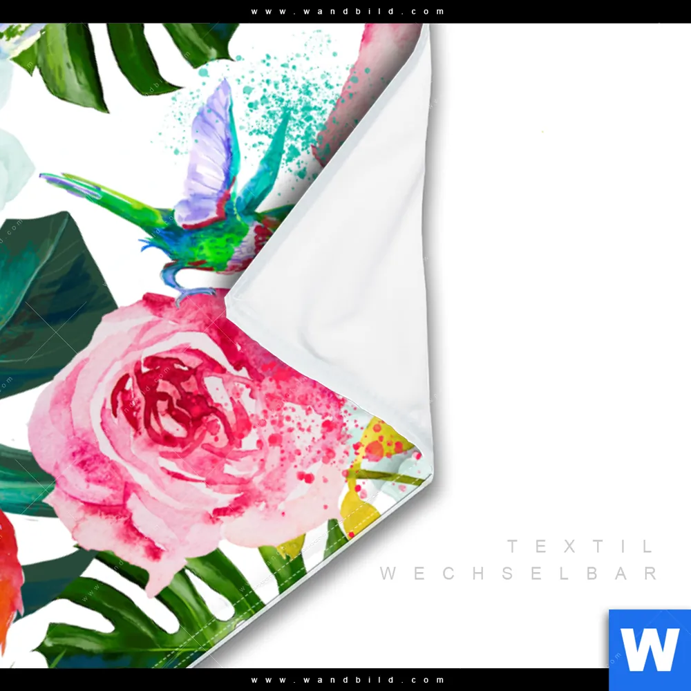 Wechselmotiv Textil | Blumen & Papageien Aquarell | Hochformat