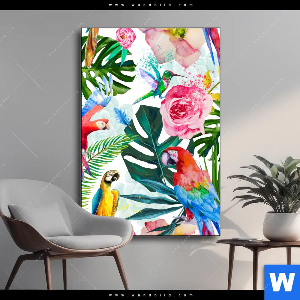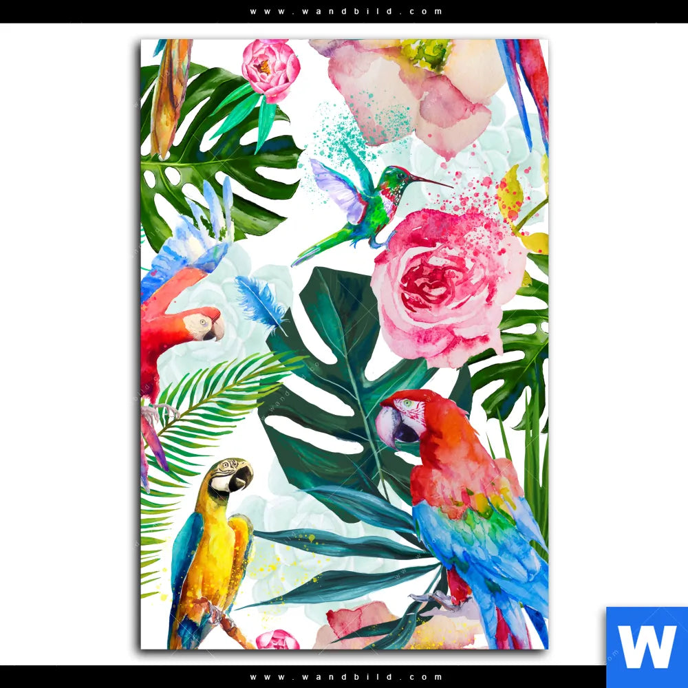 Wechselmotiv | Blumen & Papageien Aquarell | Hochformat