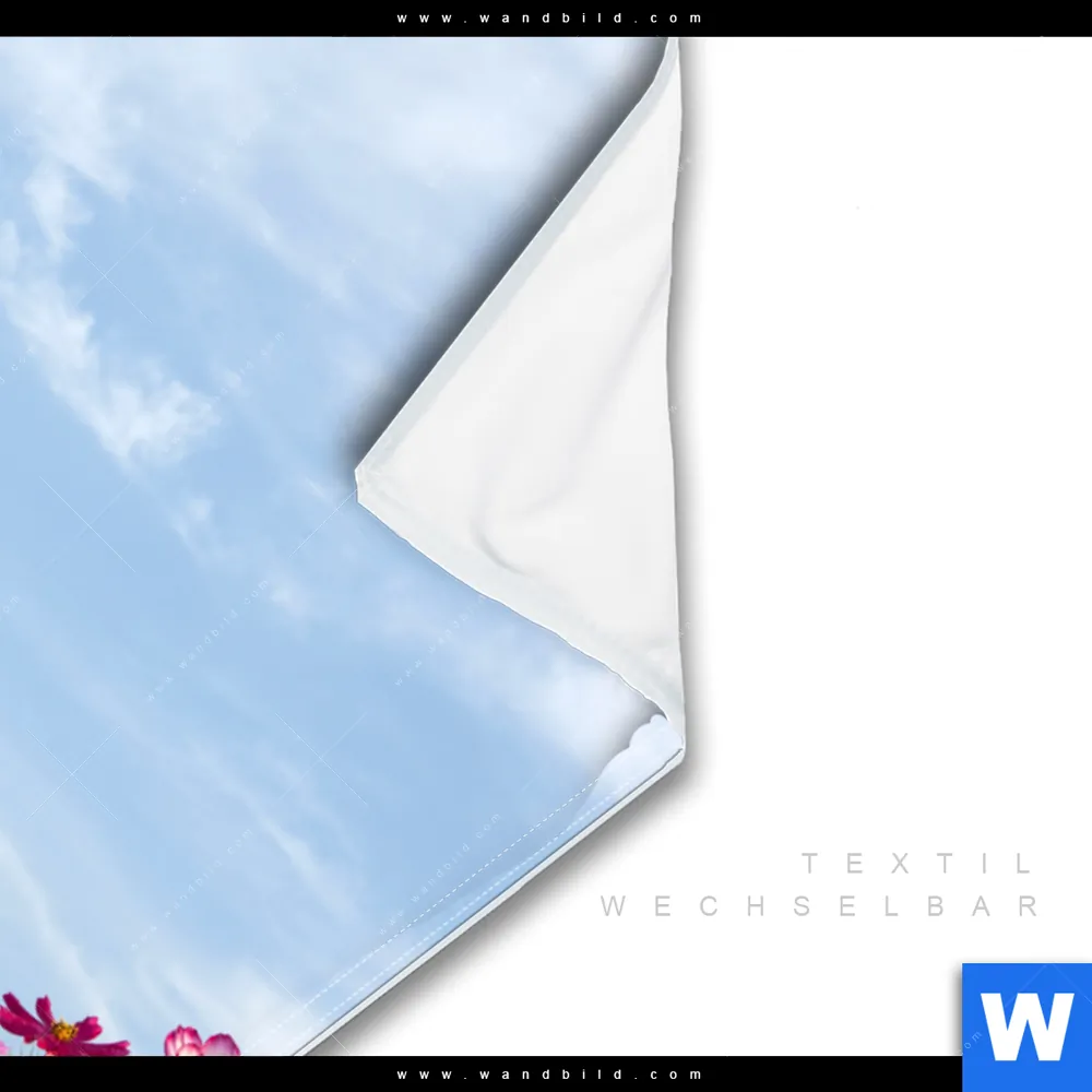 Wechselmotiv Textil | Blumenwiese bei strahlend blauem Himmel | Hochformat