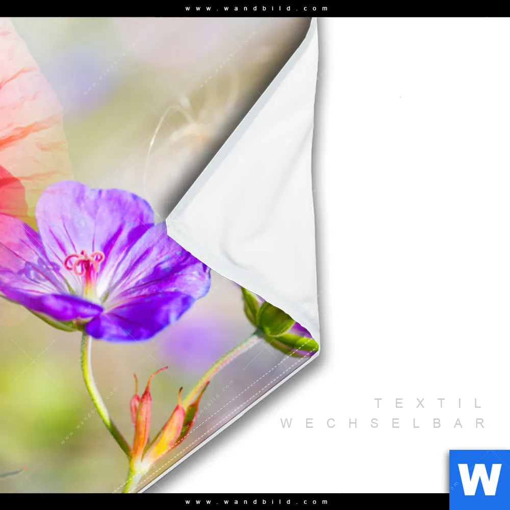 Wechselmotiv Textil | Blumenwiese mit Schmetterlingen | Hochformat